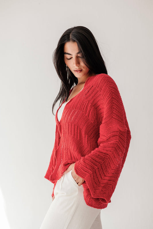 KnotWave Cardigan in Pale Red