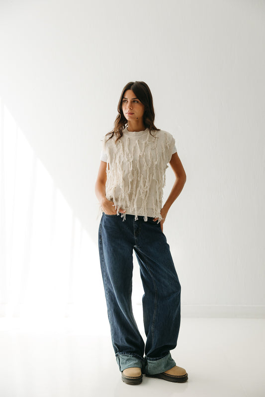 Fringed up Vest in Cream