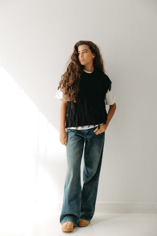Fringed up Vest in Black
