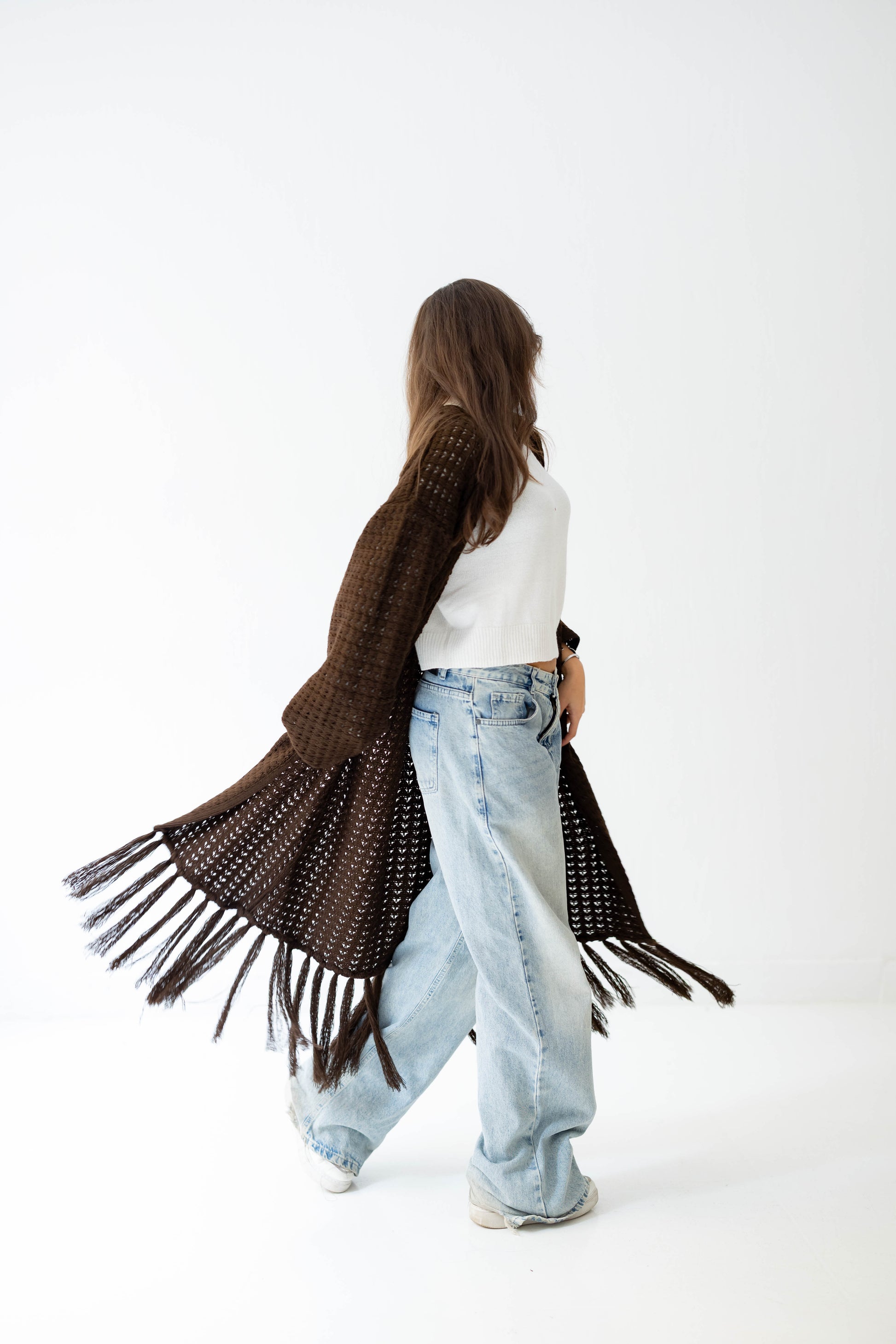 Boho Fringed Cardigan in Brown