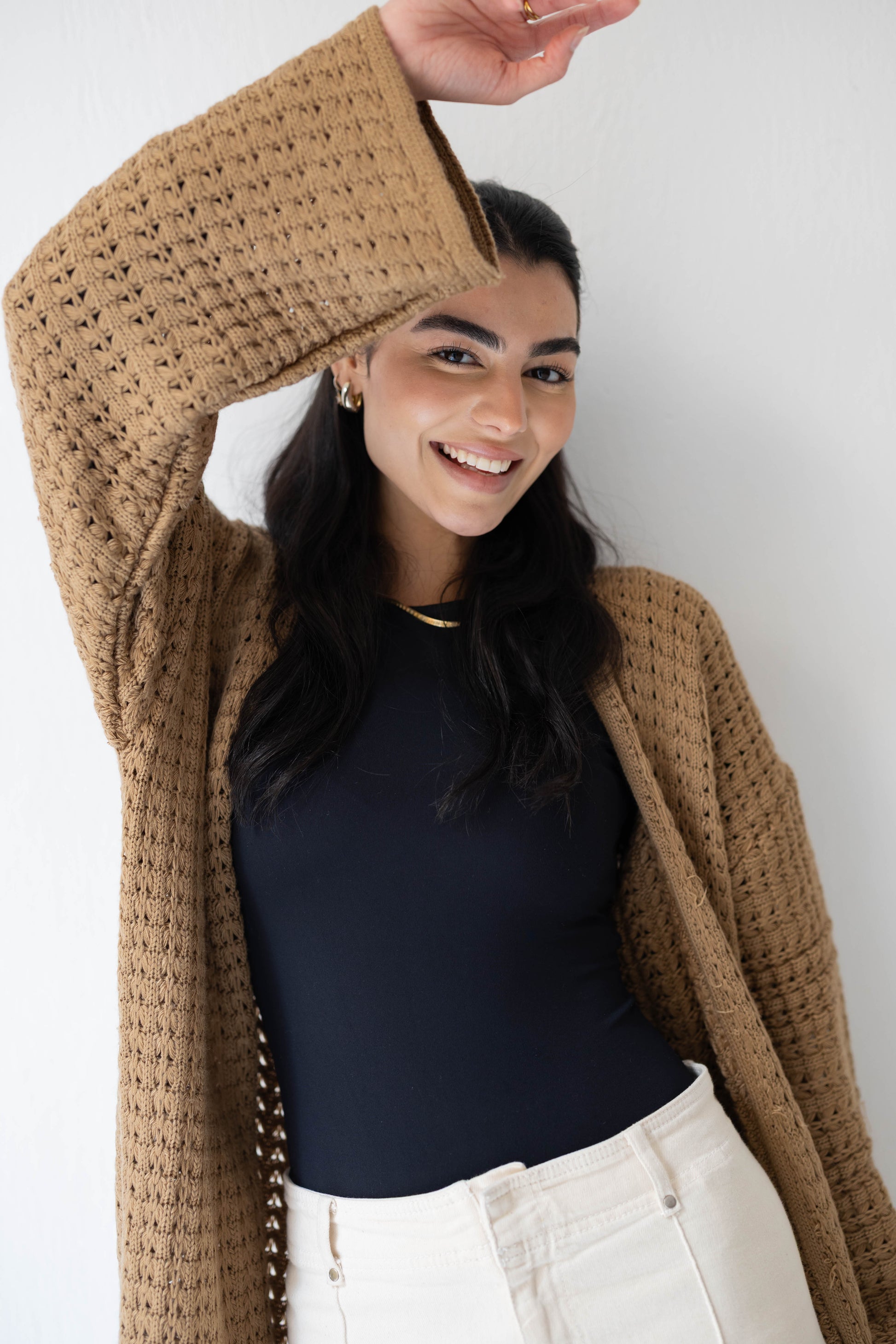 Layer up in effortless boho style with the Boho Fringed Cardigan – a long, soft knitted piece with playful fringes cascading down, adding movement and charm to any outfit
