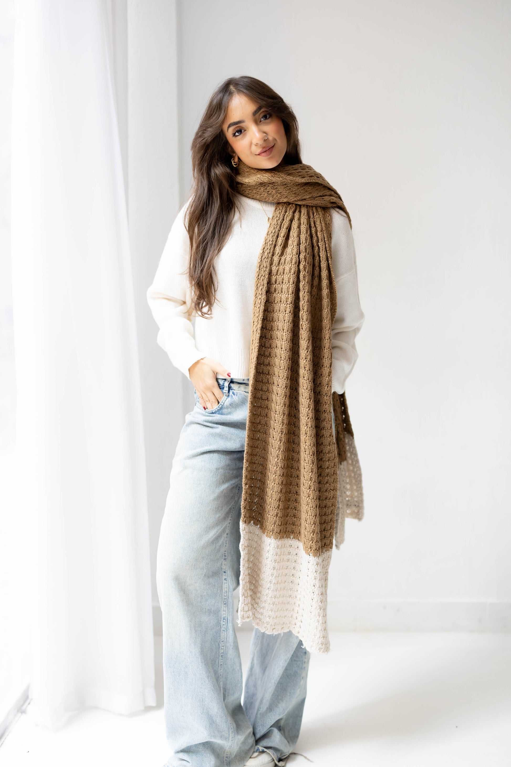 Wrap yourself in effortless warmth with this soft, two-tone shawl. The main color drapes beautifully, while the cream-edged border adds a subtle, luminous touch. Lightweight yet cozy, it’s perfect for layering over any outfit and brings a refined, artisanal charm to your look. Ideal for cozy mornings, chilly evenings, or simply adding a touch of elegance to your everyday style. 💛✨