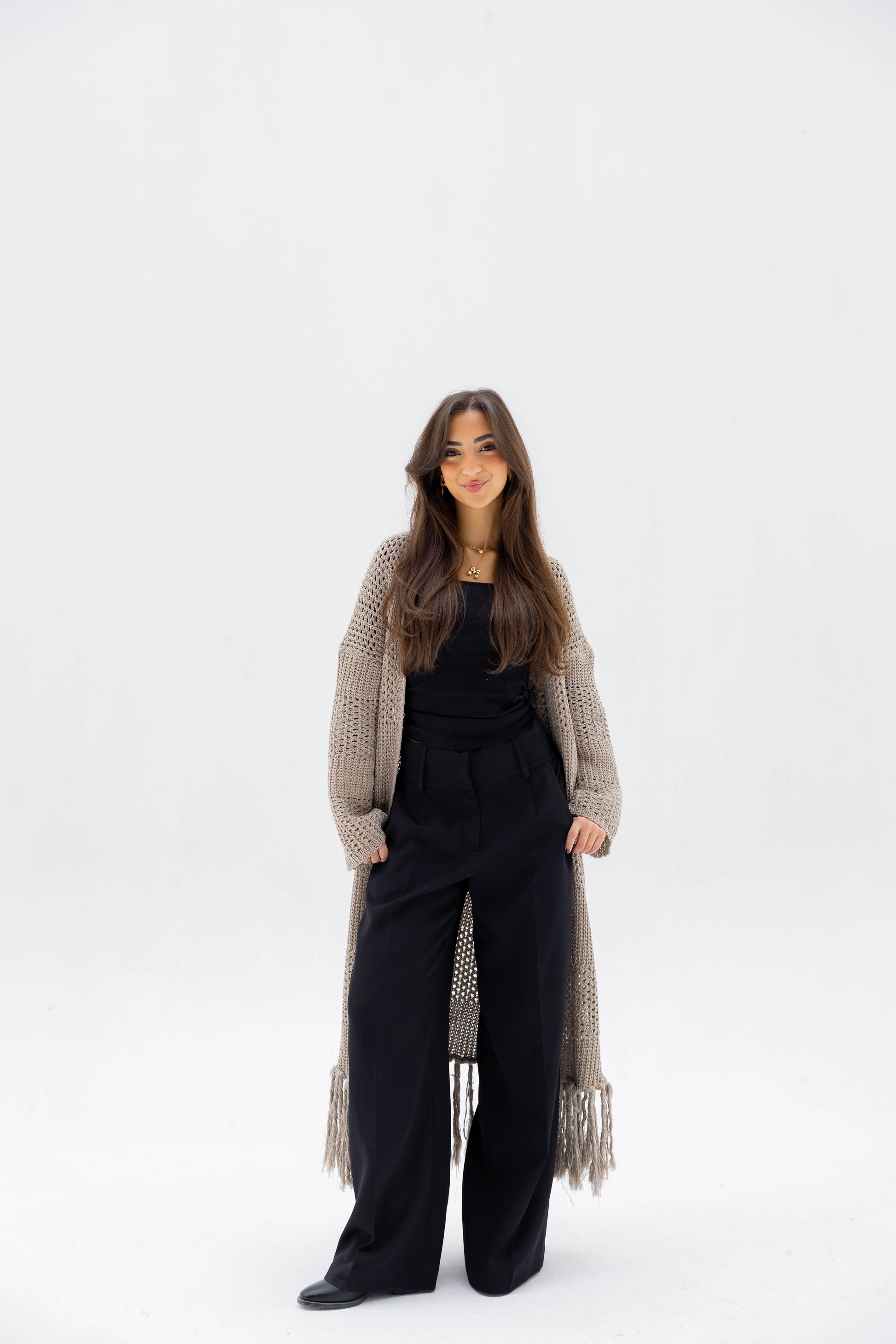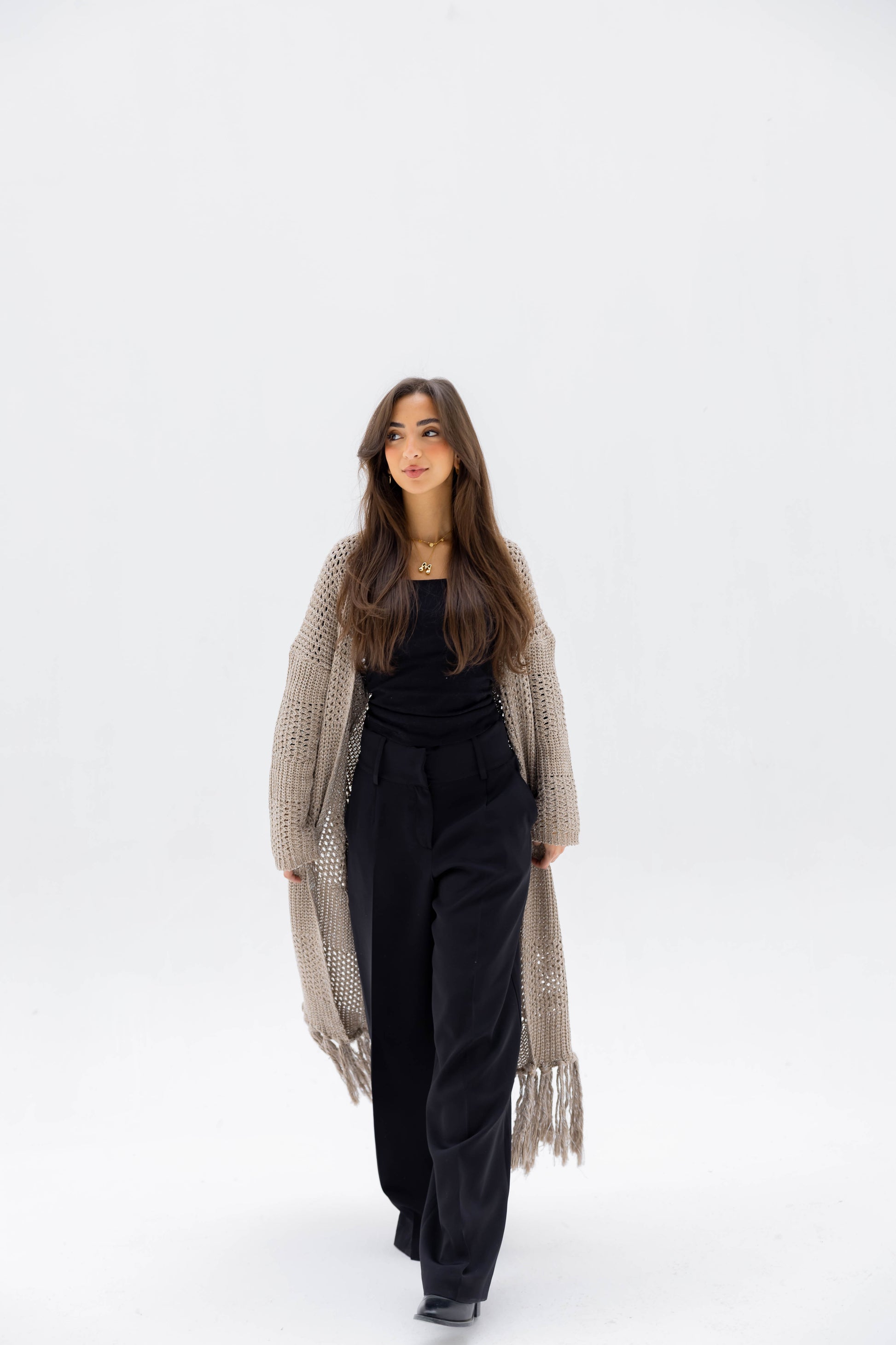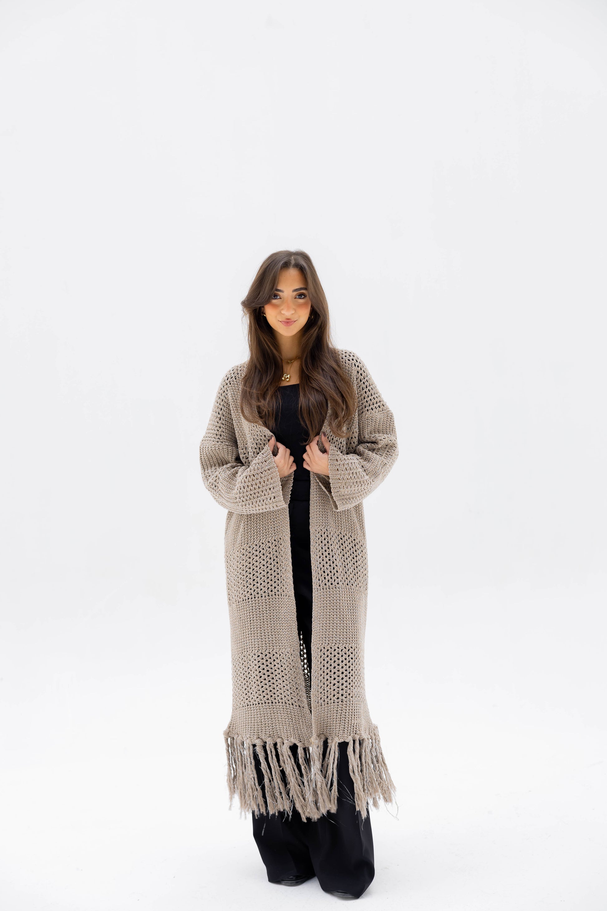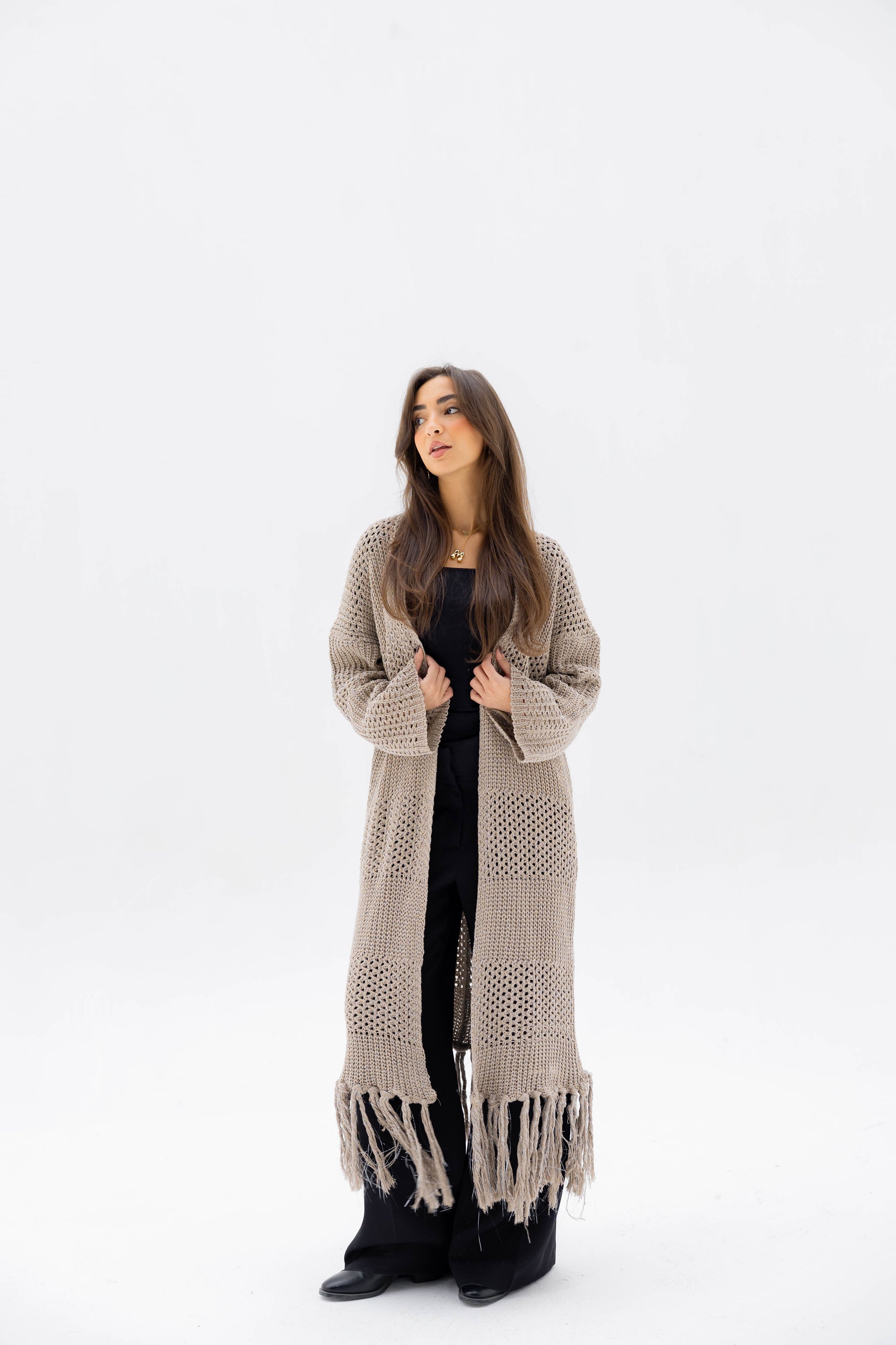 Wrap yourself in the bohemian spirit with this Fringed Breeze Cardigan. This beautifully knitted cardigan features a relaxed, easy fit, perfect for layering. The eye-catching detail is the playful fringe that dances along the hem and cuffs, adding a touch of movement and texture. Crafted from a soft and comfortable knit, this cardigan is ideal for adding a touch of effortless style to any outfit, from casual days to breezy evenings.