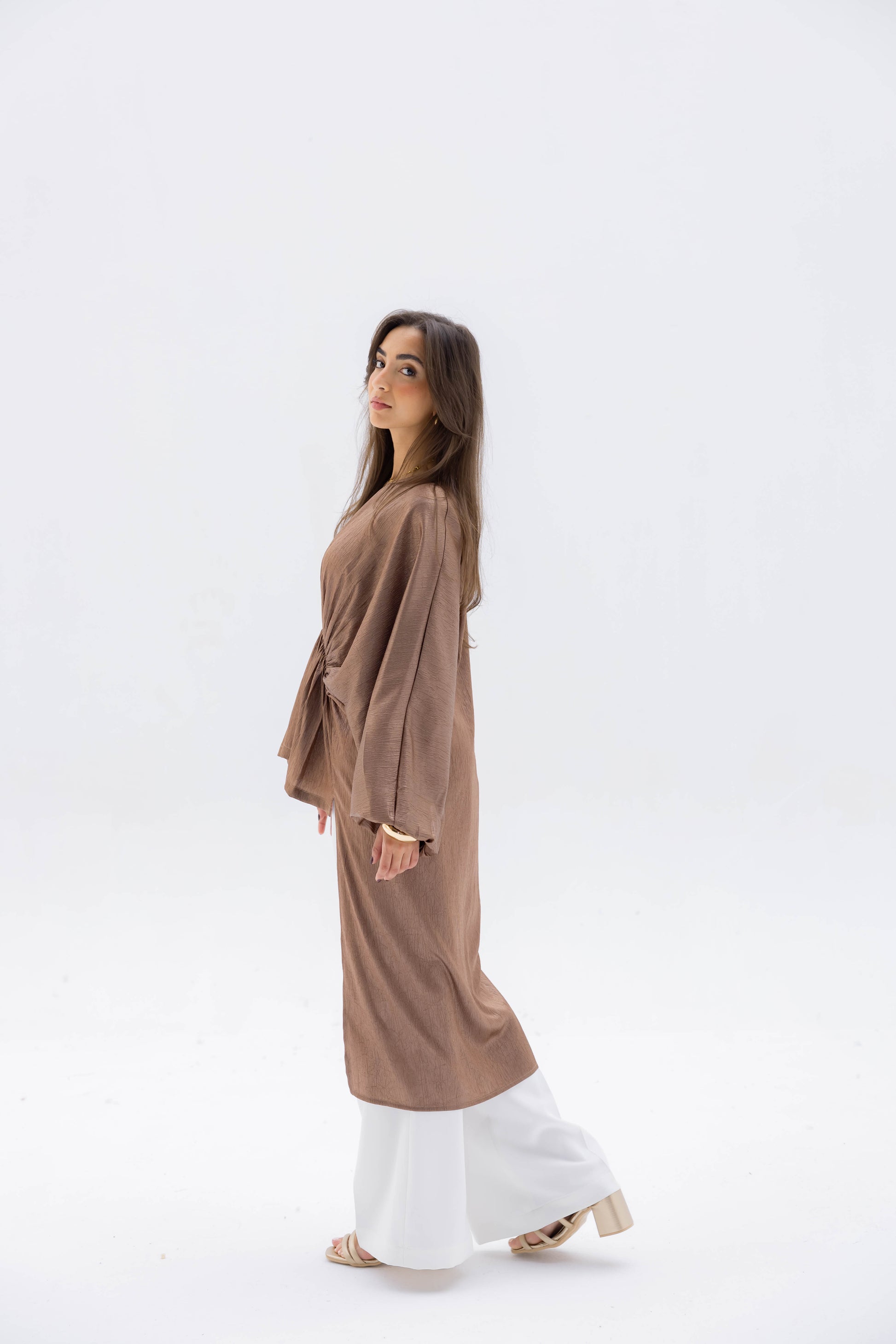 Layali Blouse is where elegance meets subtle glow. Designed in a fluid high-low silhouette with a delicate shimmer finish, it moves beautifully with every step. Feminine, graceful, and perfect for evenings that linger.