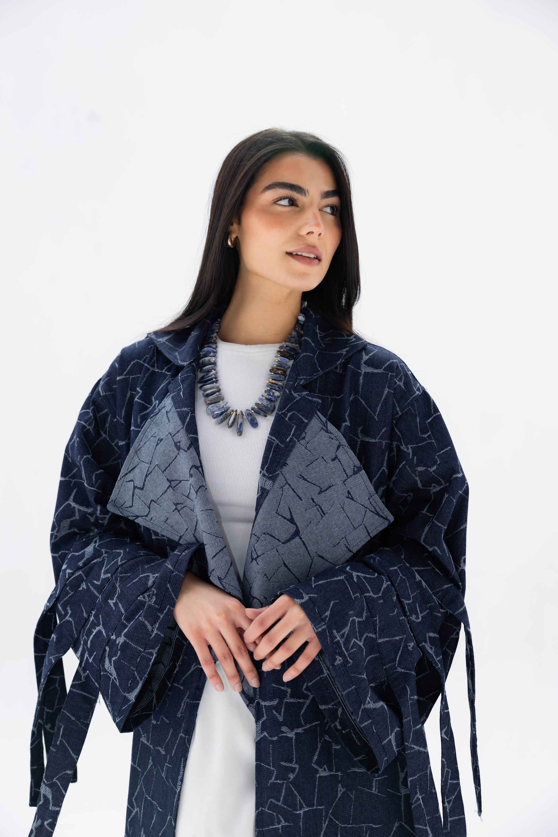 Arabella Denim Cardigan features an oversized silhouette with a dramatic collar, combining relaxed comfort with a chic statement. The soft denim drapes effortlessly, perfect for layering over any look.