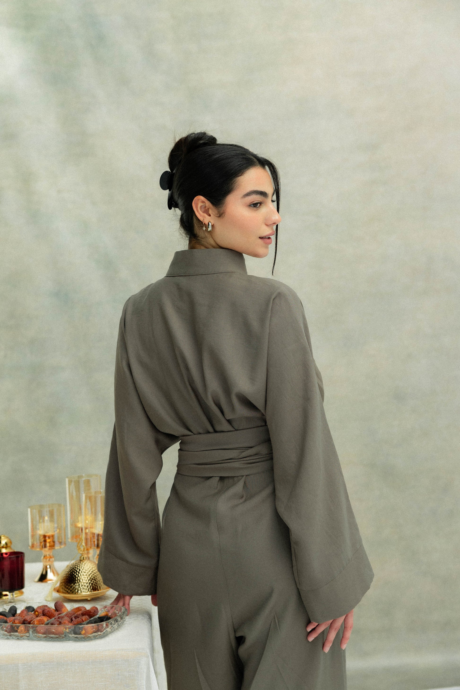 (PRE-ORDER) Valore Wrap Jumpsuit in Olive