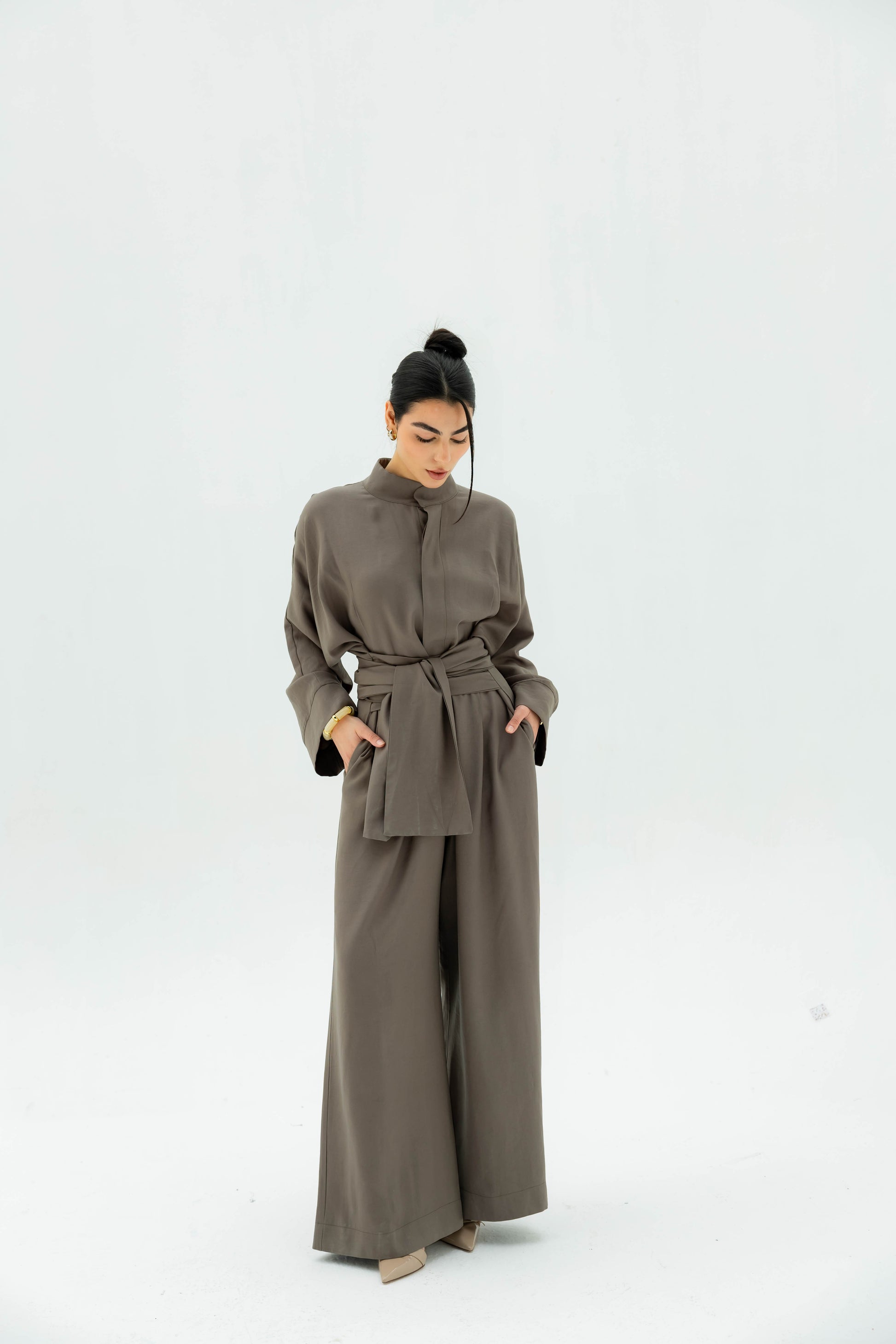 The Valore Wrap Jumpsuit exudes modern elegance. Featuring a draped wrap bodice, belted waist, and flowing wide-leg silhouette, it’s designed for effortless sophistication from day to evening.