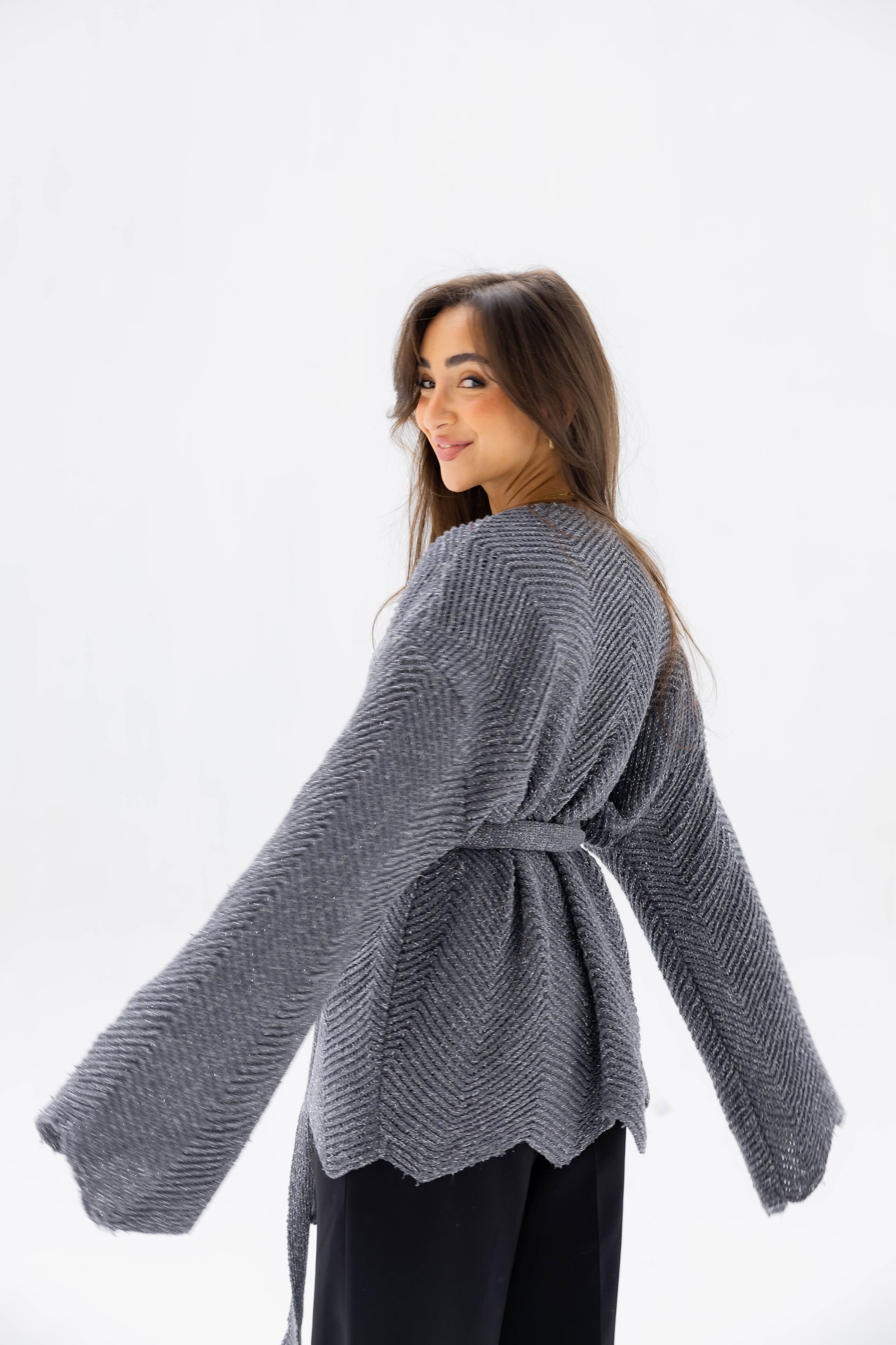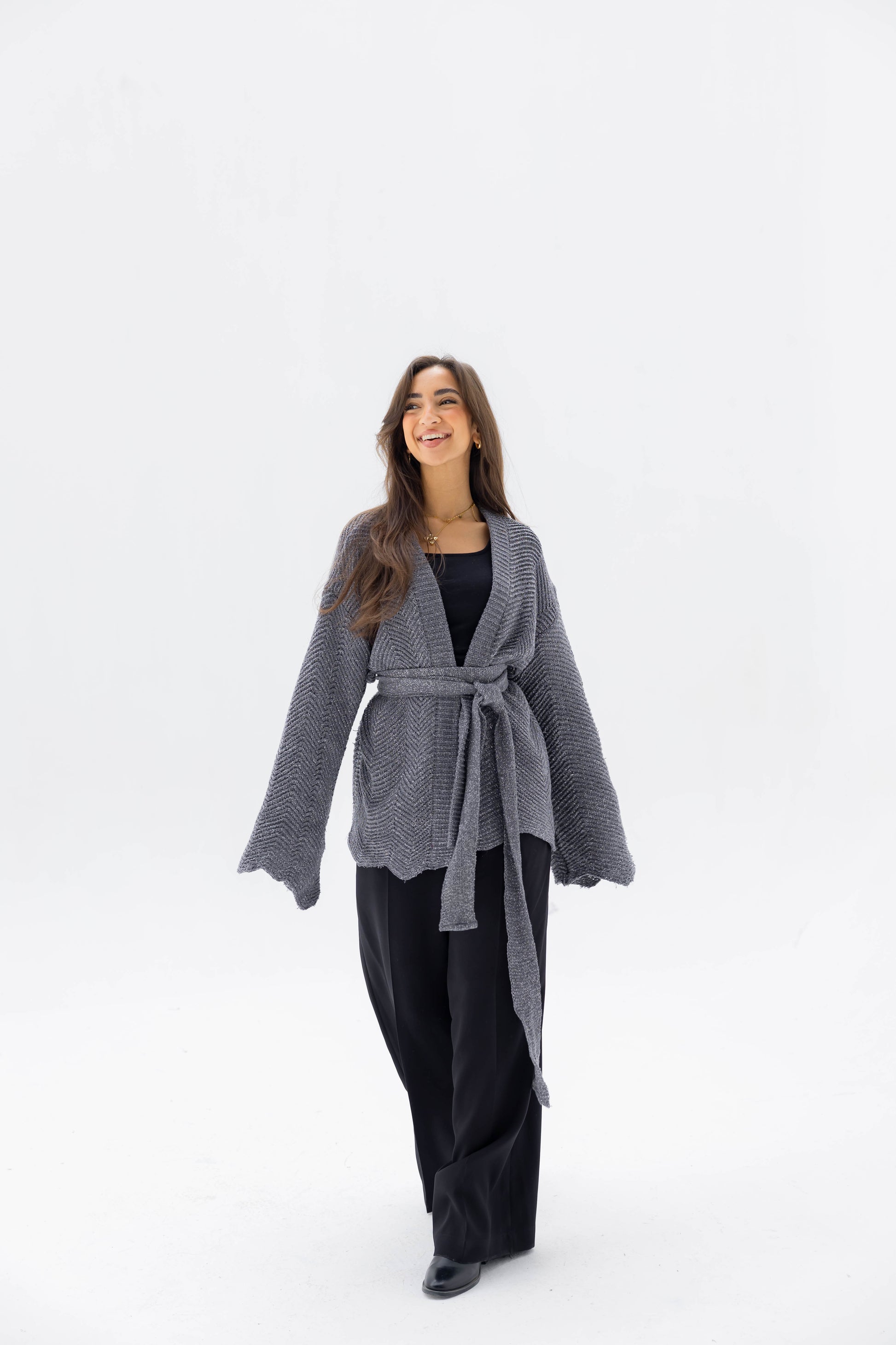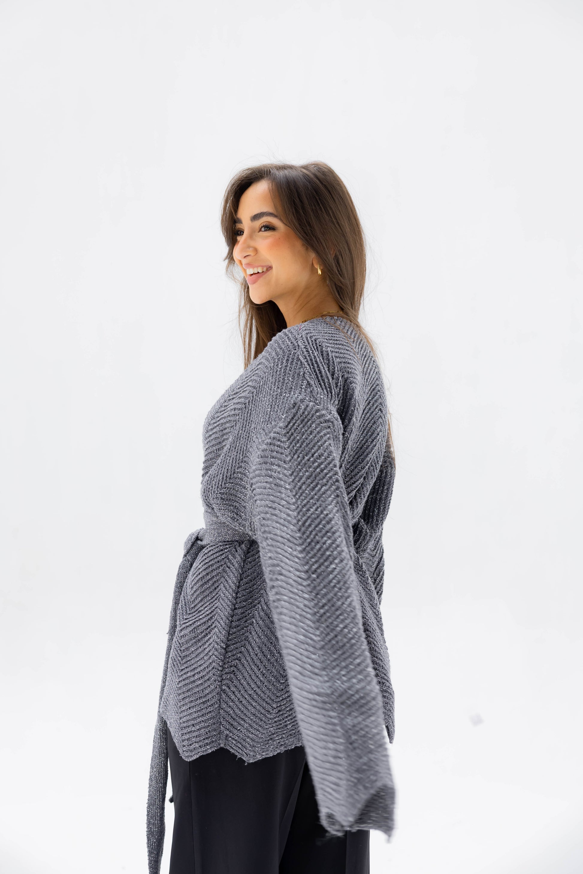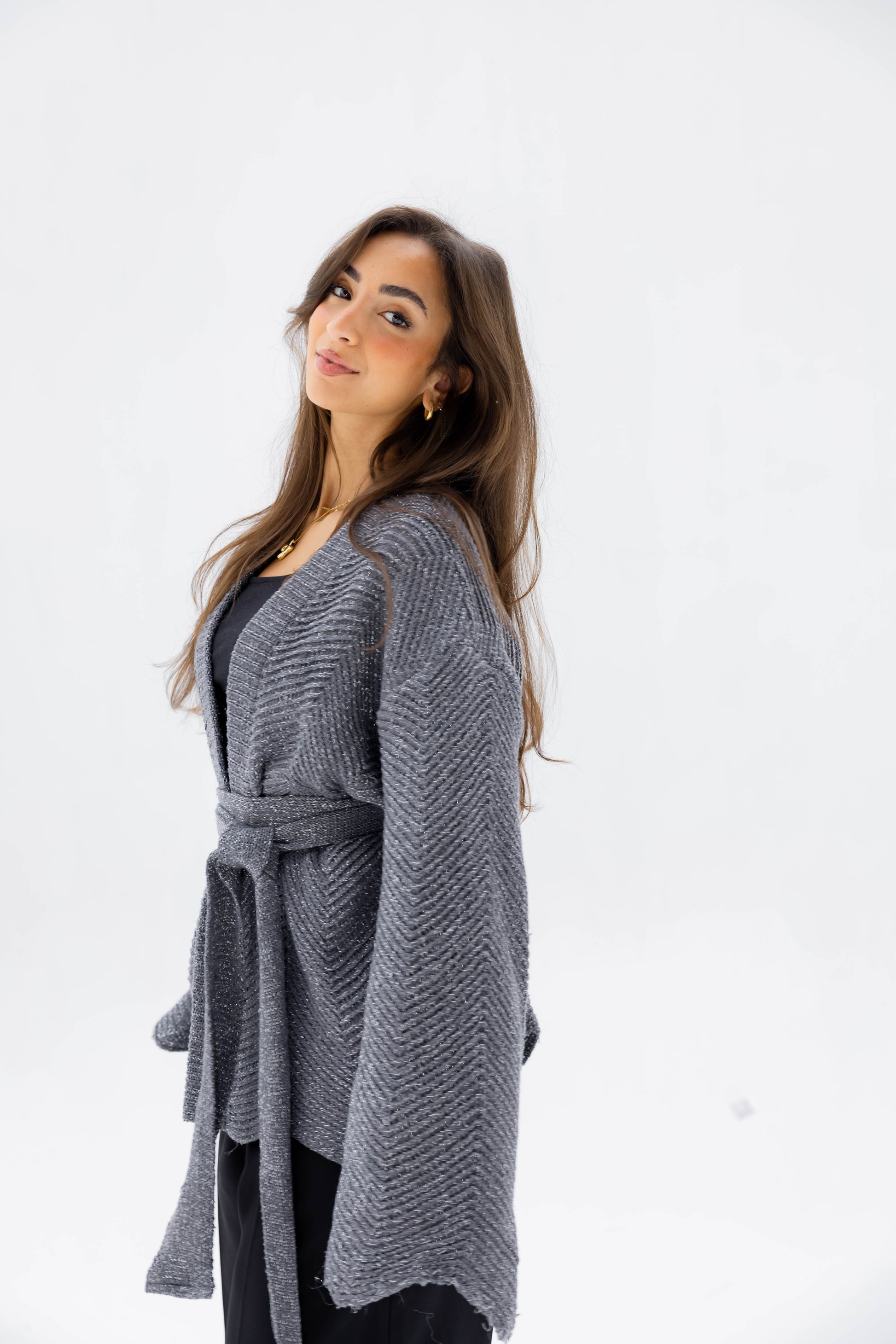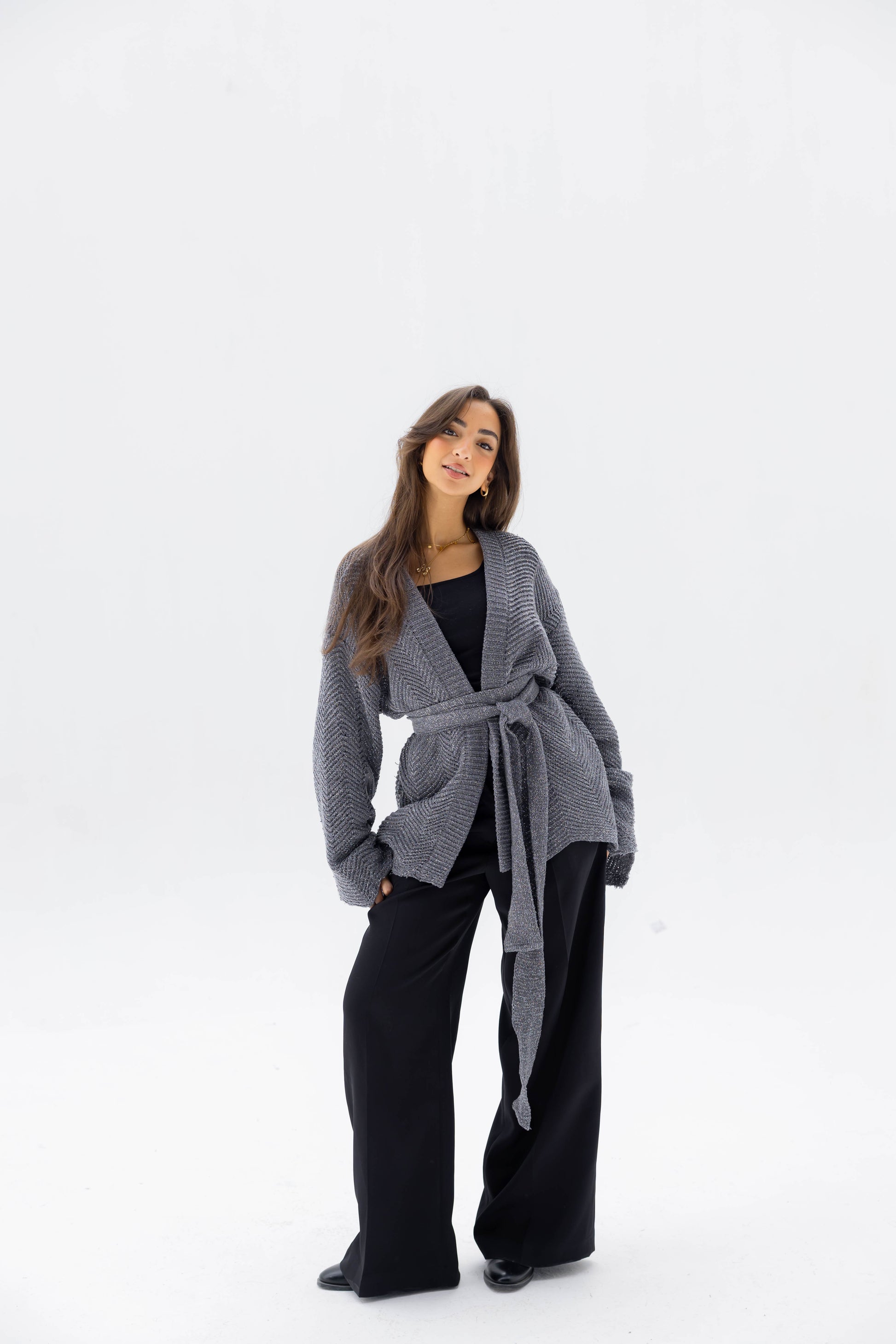 Wrap yourself in understated elegance with the Rosalie Knit Cardigan. Crafted from a luxuriously soft knit with a subtle shimmer, it drapes effortlessly for a relaxed yet refined silhouette. Perfect for layering over casual or polished looks, it’s a timeless wardrobe essential.