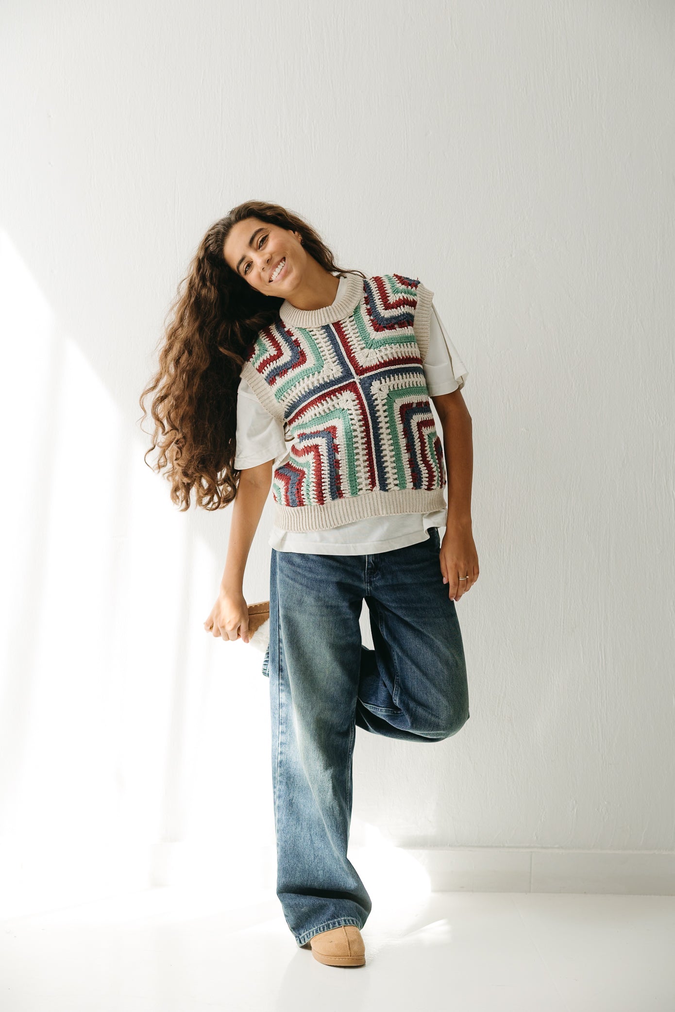The Artisan Vest celebrates the beauty of craftsmanship. Hand-crocheted with intricate stitches and bold geometric patterns, each piece carries a unique story of skill and detail. A statement layer that blends artistry with timeless style, making it a true wardrobe treasure.