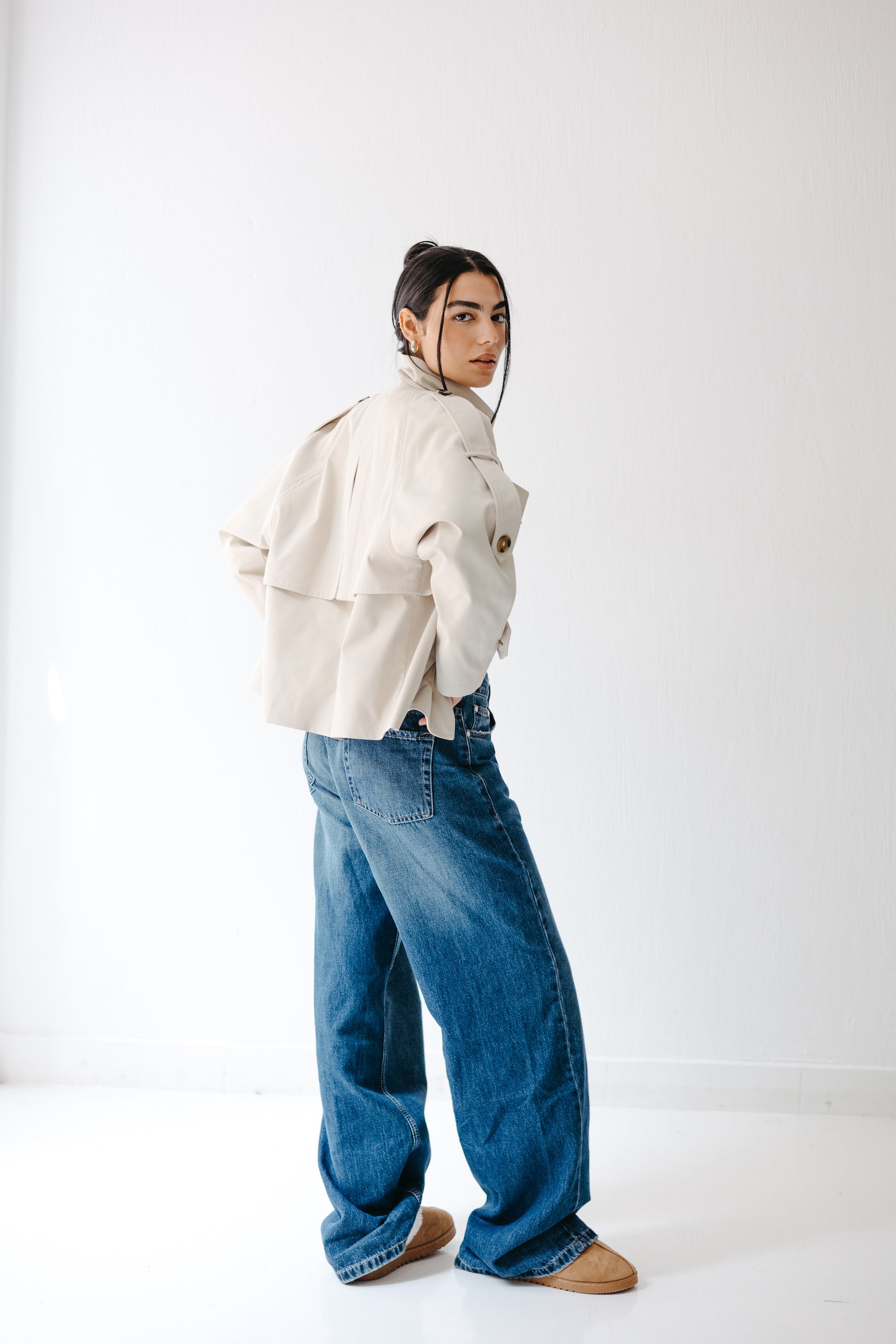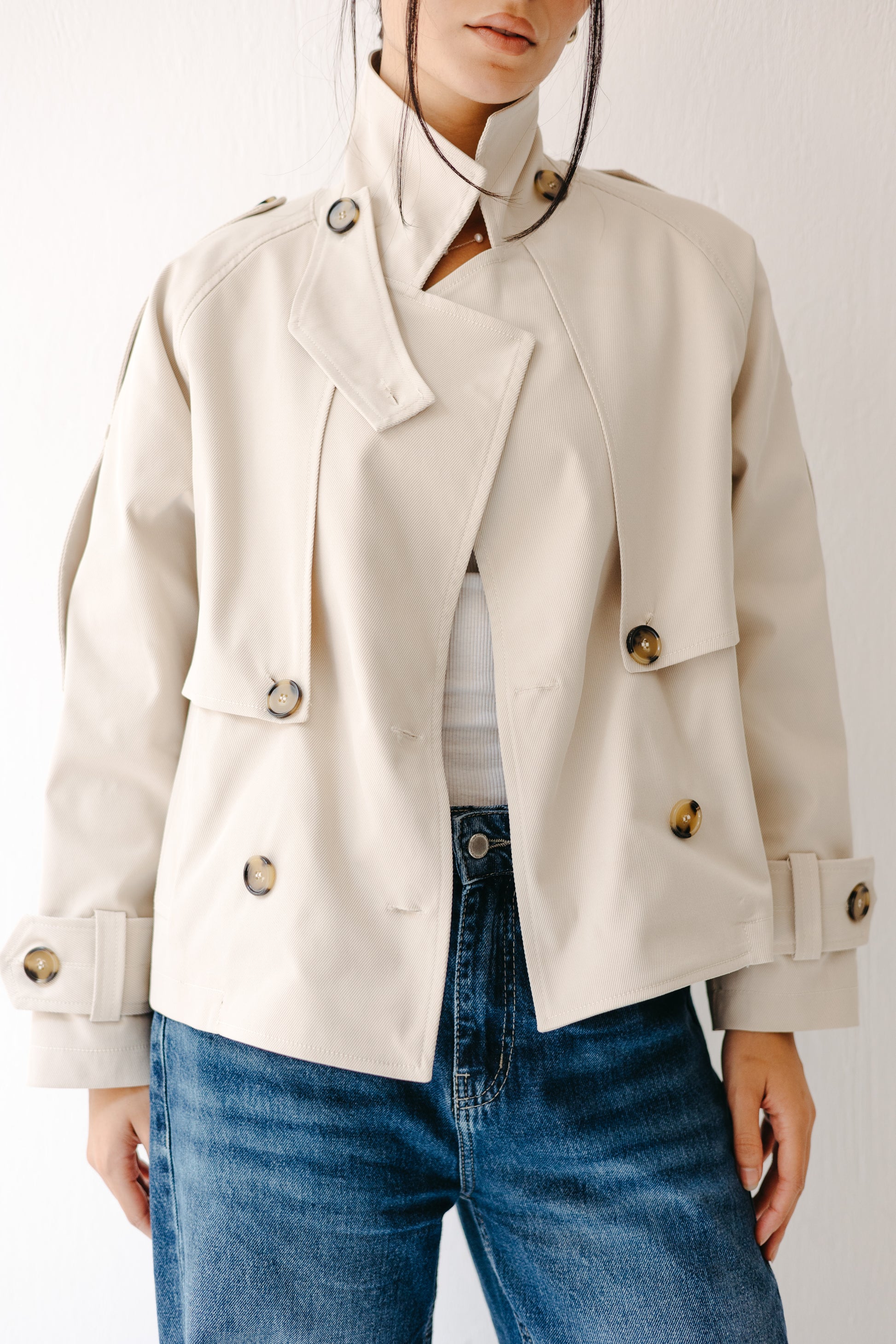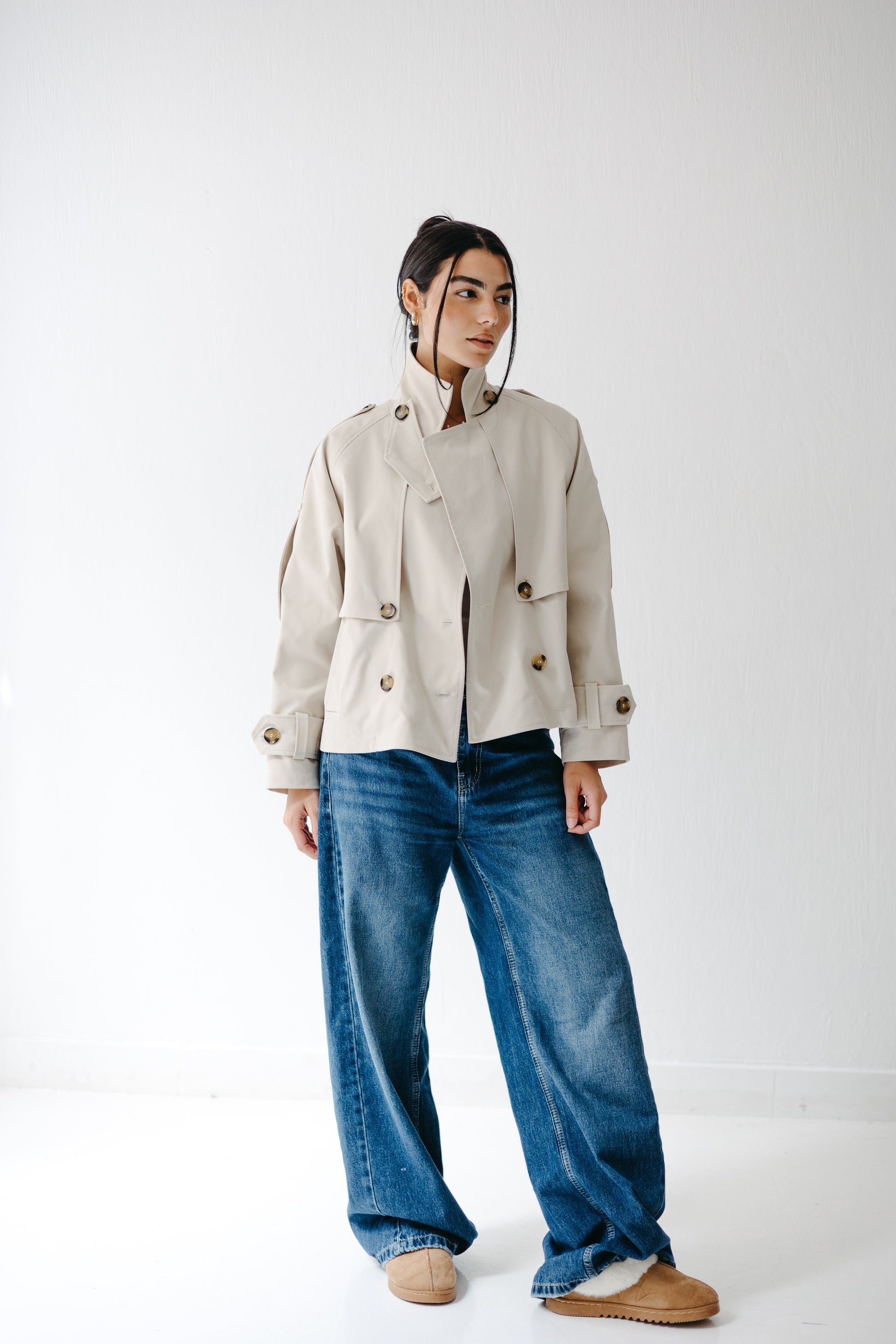 A refined take on the classic trench — The Cropped Core Trench brings effortless structure and quiet confidence to your cold-weather wardrobe. Designed with sharp lapels, a relaxed cropped fit, and polished button details, it pairs timeless tailoring with contemporary ease.