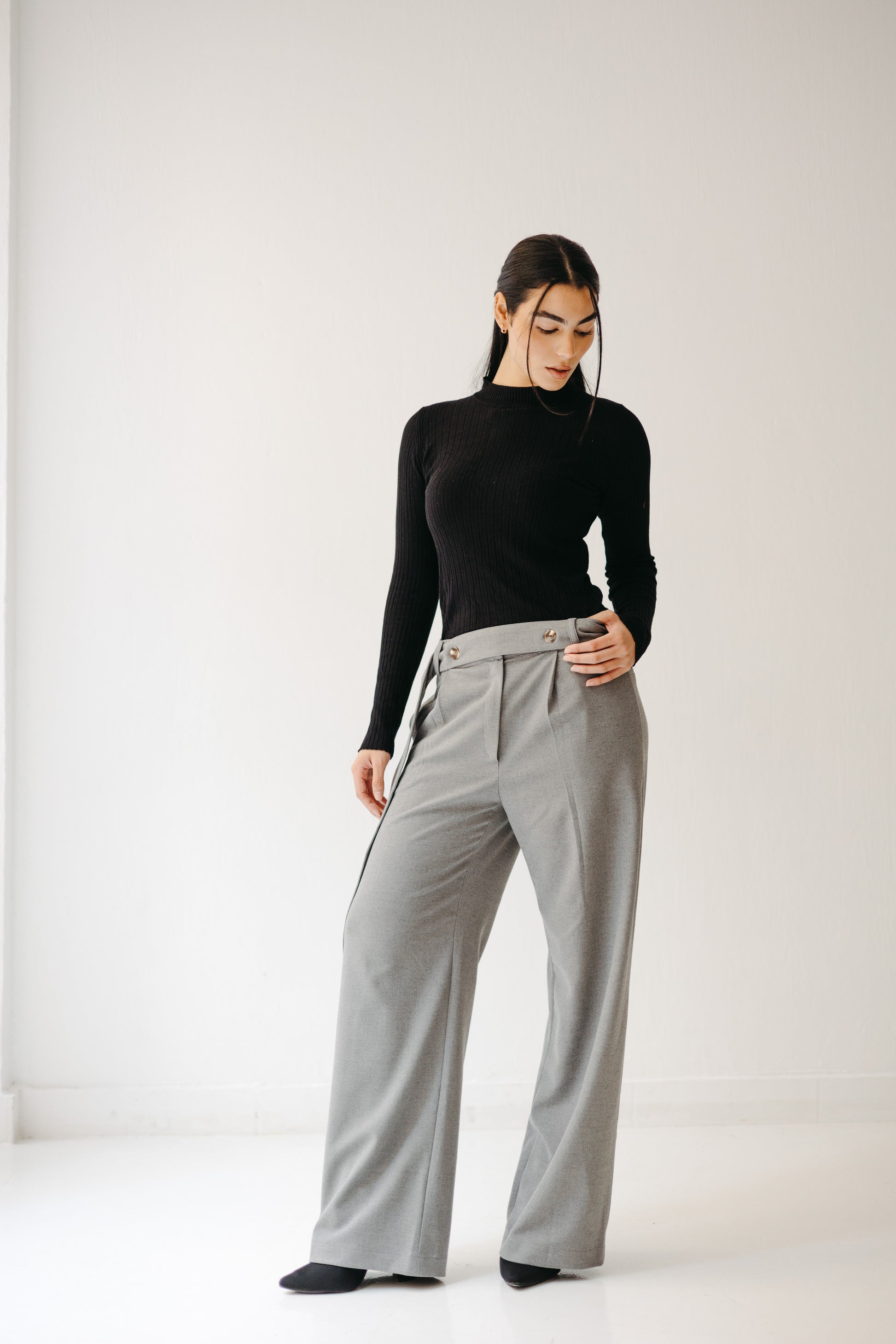 Tailored with precision and ease — The Form Trousers blend structure with soft flow. Designed with a high-waist silhouette, statement side belt, and wide-leg cut that elongates the form. The perfect piece for effortless winter layering.