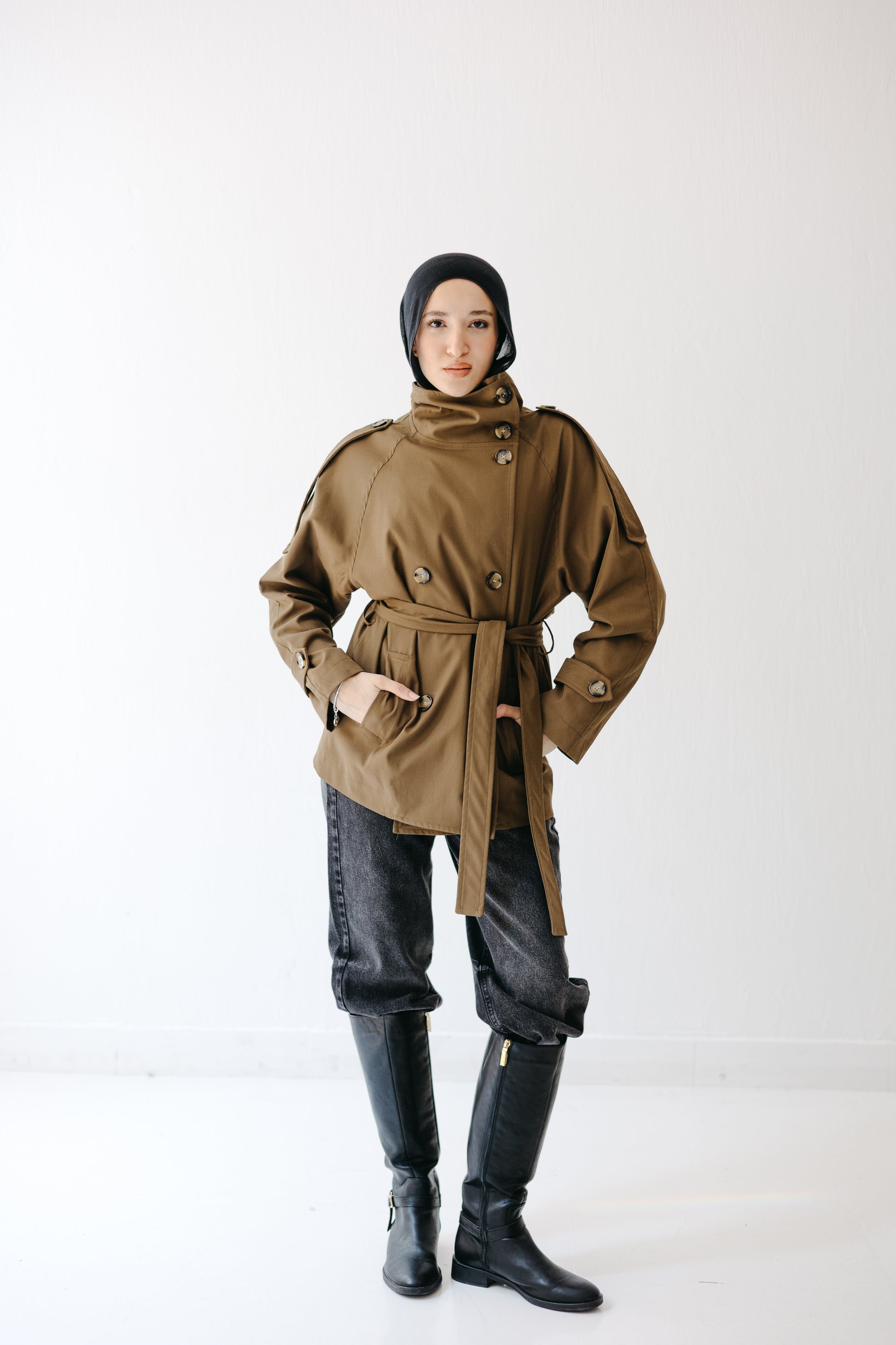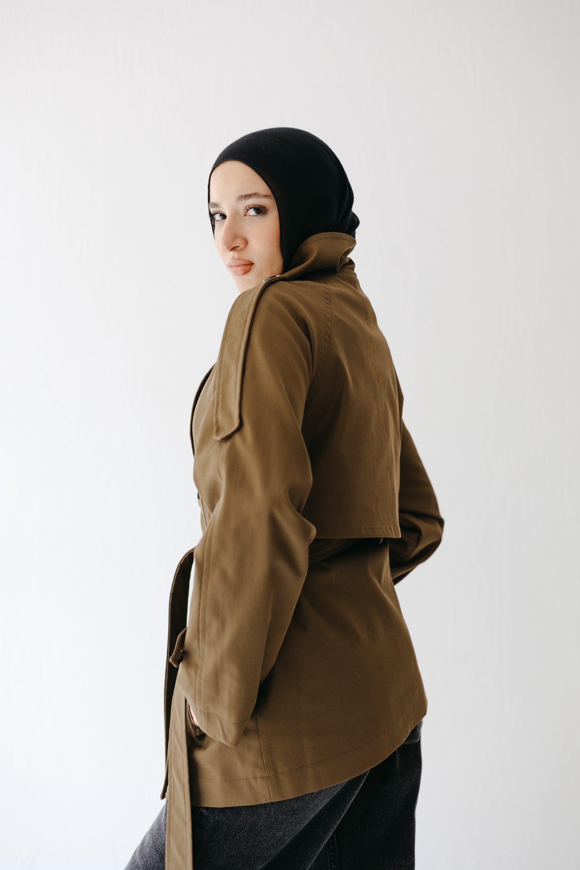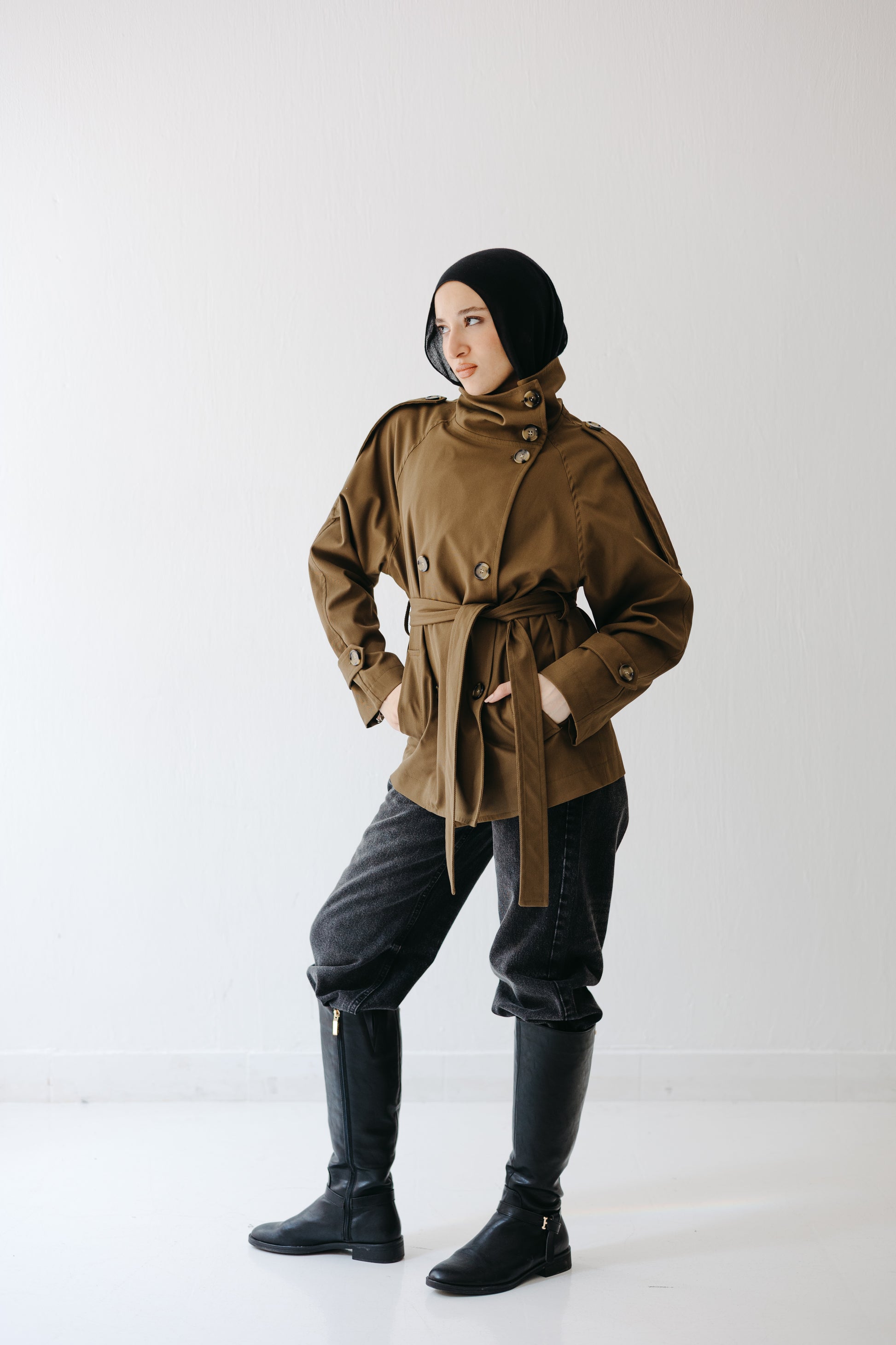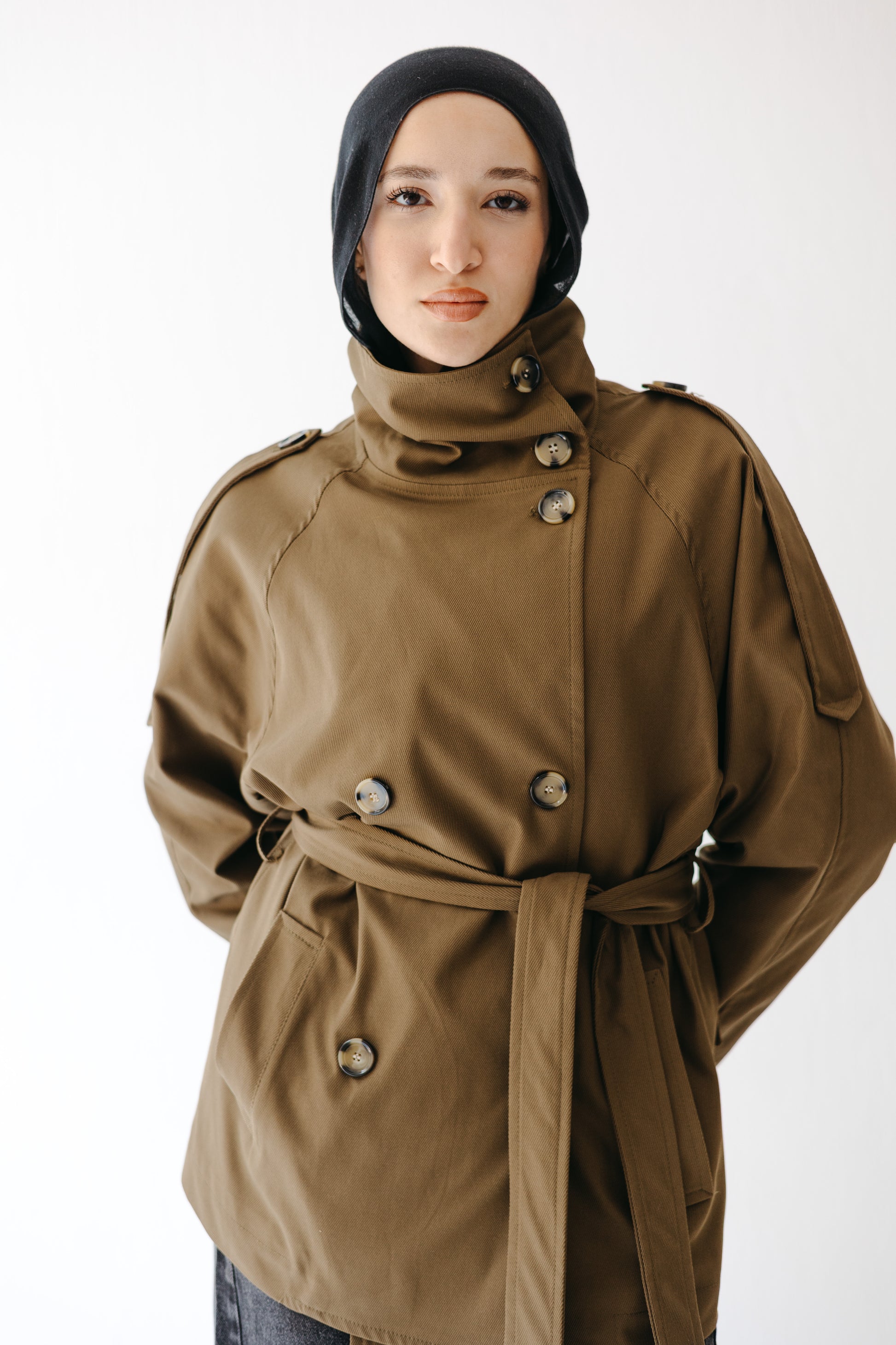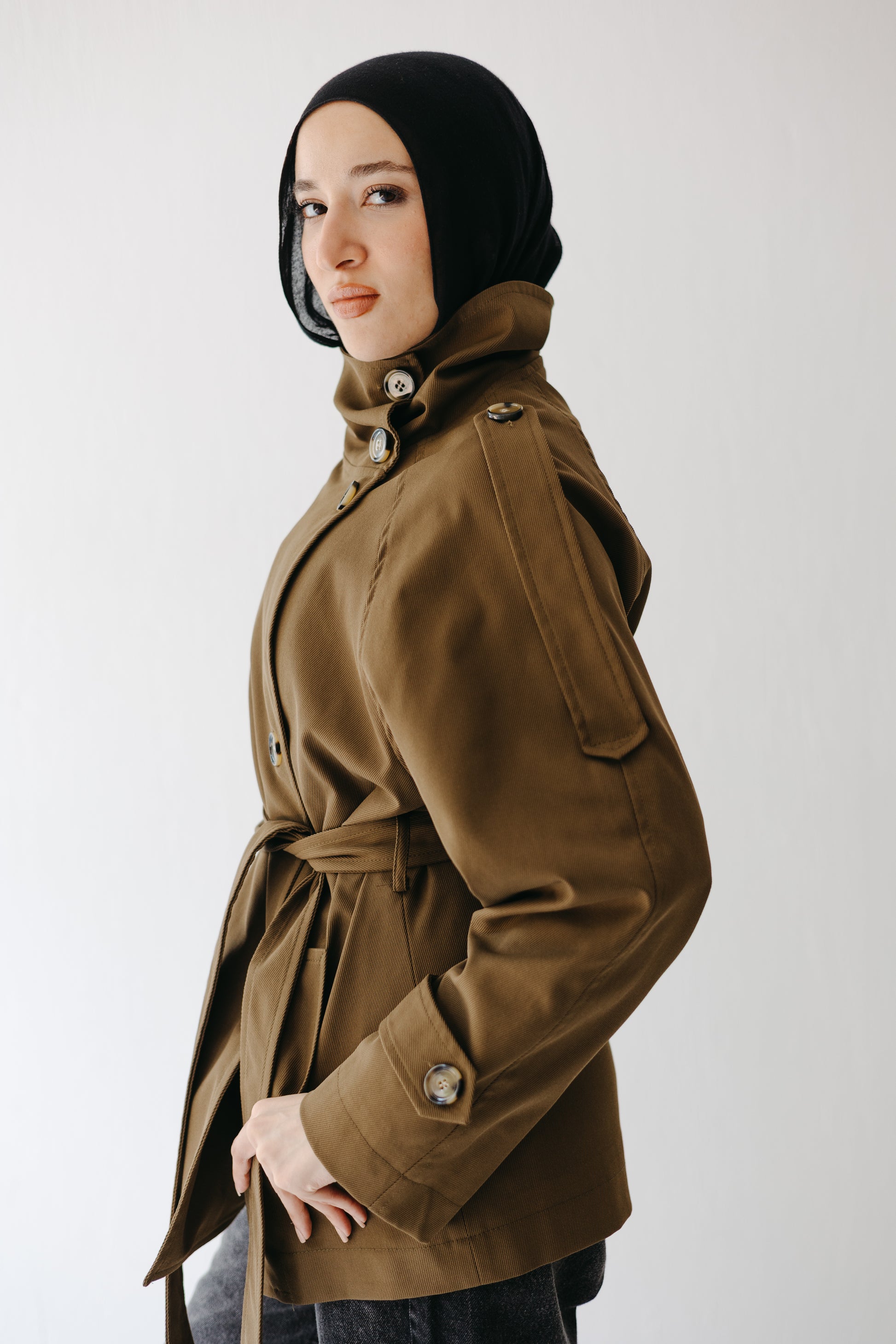 Wrap yourself in effortless sophistication with The Funnel Trench — a reimagined classic defined by its sculpted high collar and relaxed, cocooning silhouette. Tailored in smooth twill with a subtle sheen, it balances sharp structure with easy movement. Finished with statement buttons and a self-tie belt for a cinched, polished look.