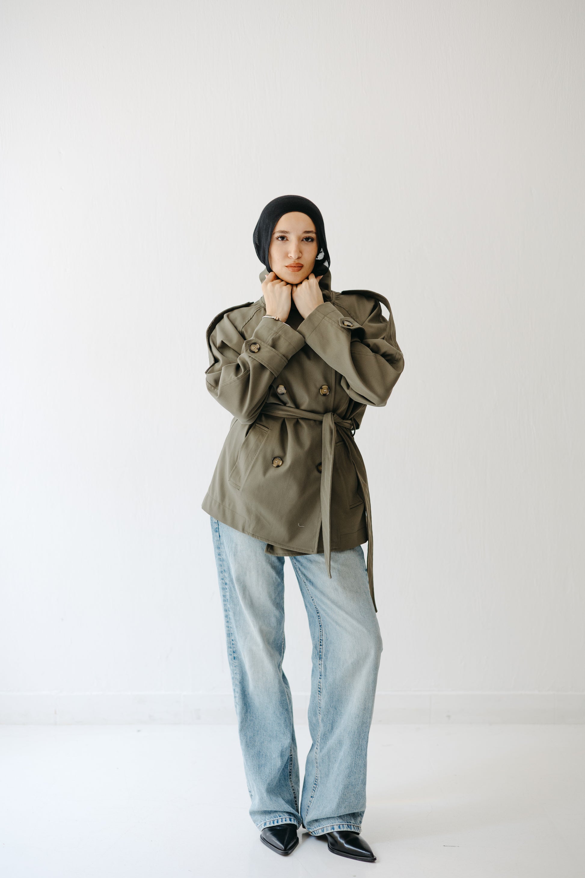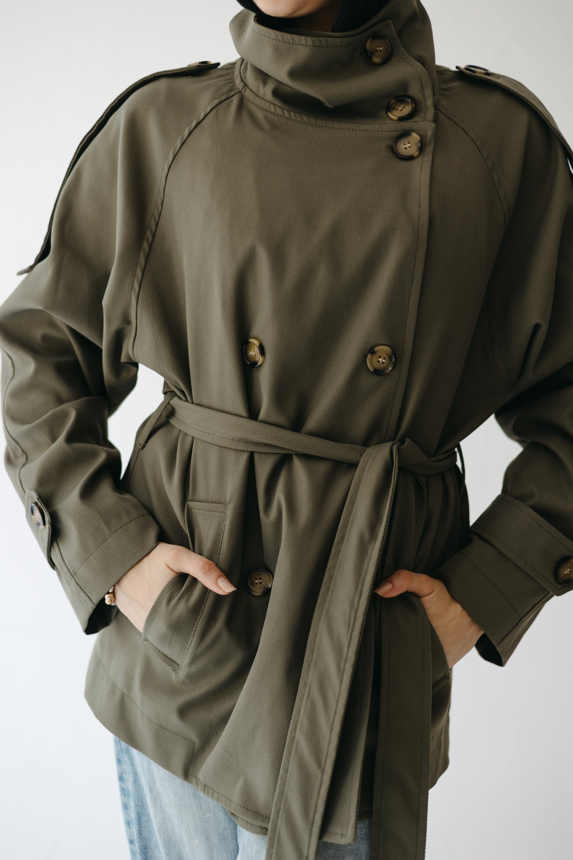 Wrap yourself in effortless sophistication with The Funnel Trench — a reimagined classic defined by its sculpted high collar and relaxed, cocooning silhouette. Tailored in smooth twill with a subtle sheen, it balances sharp structure with easy movement. Finished with statement buttons and a self-tie belt for a cinched, polished look.
