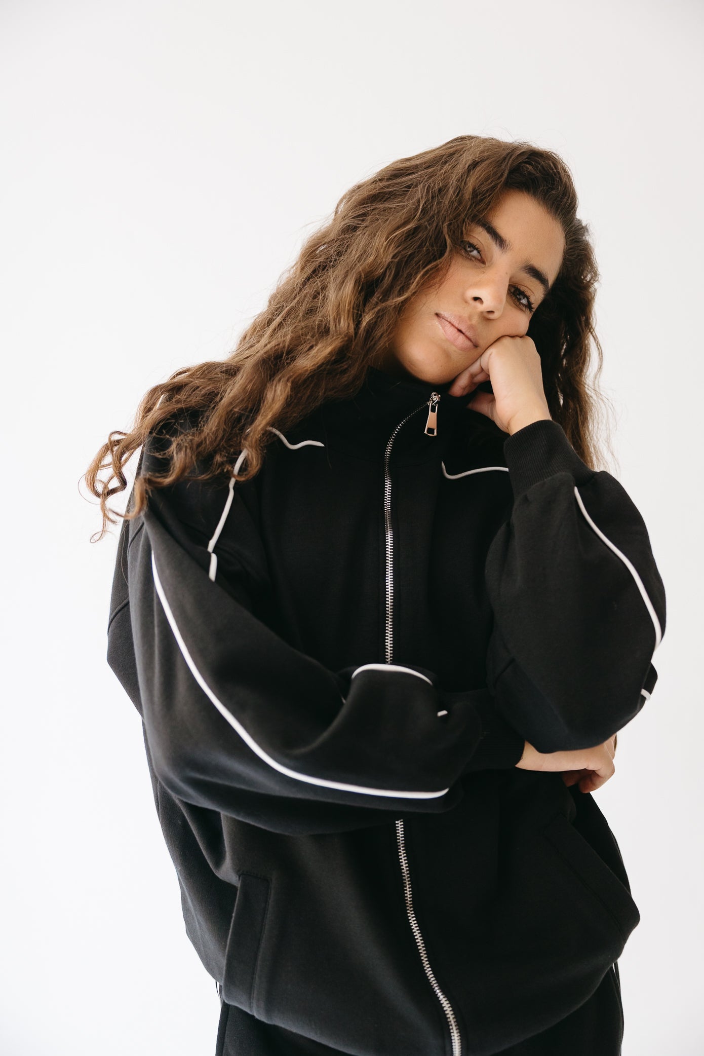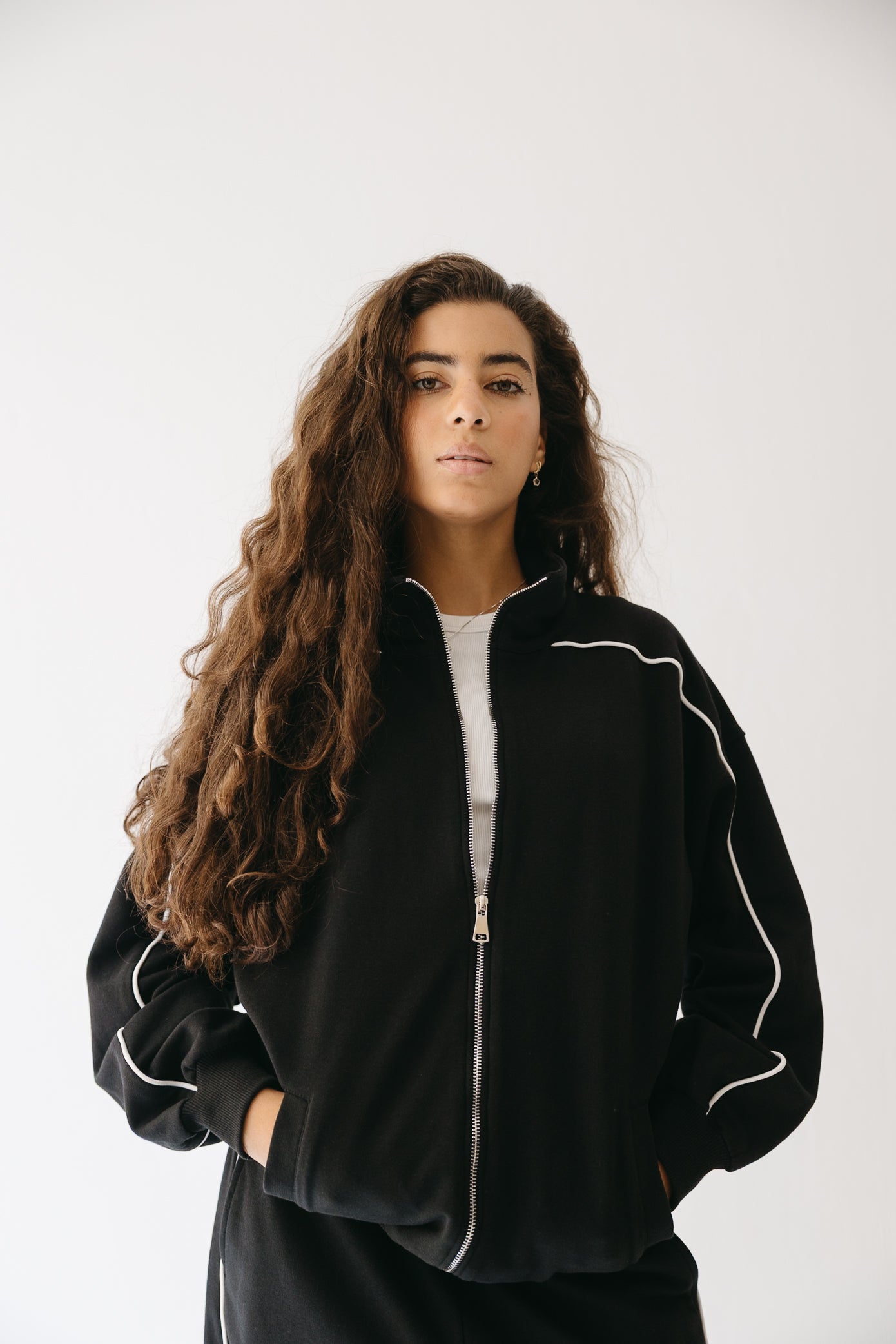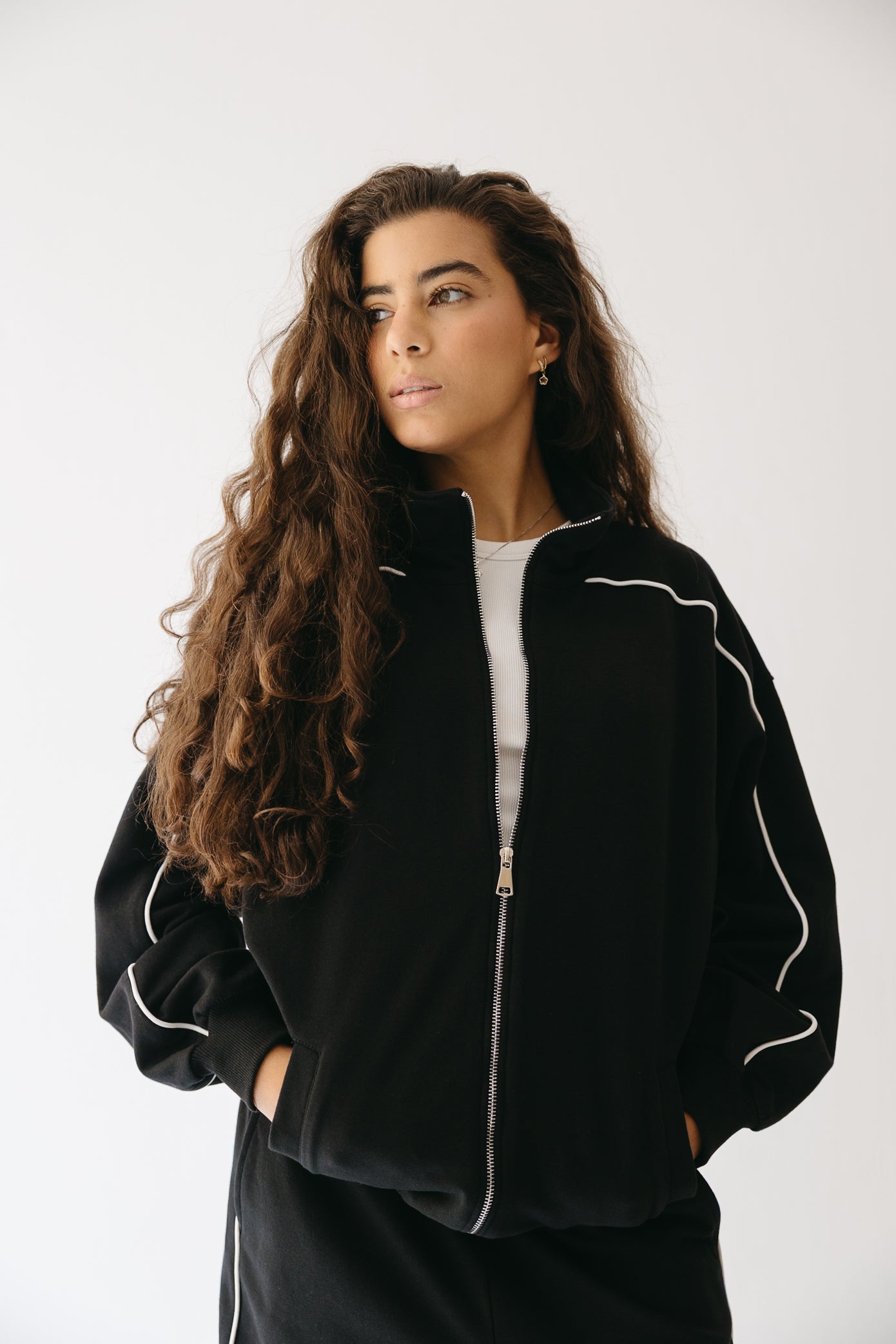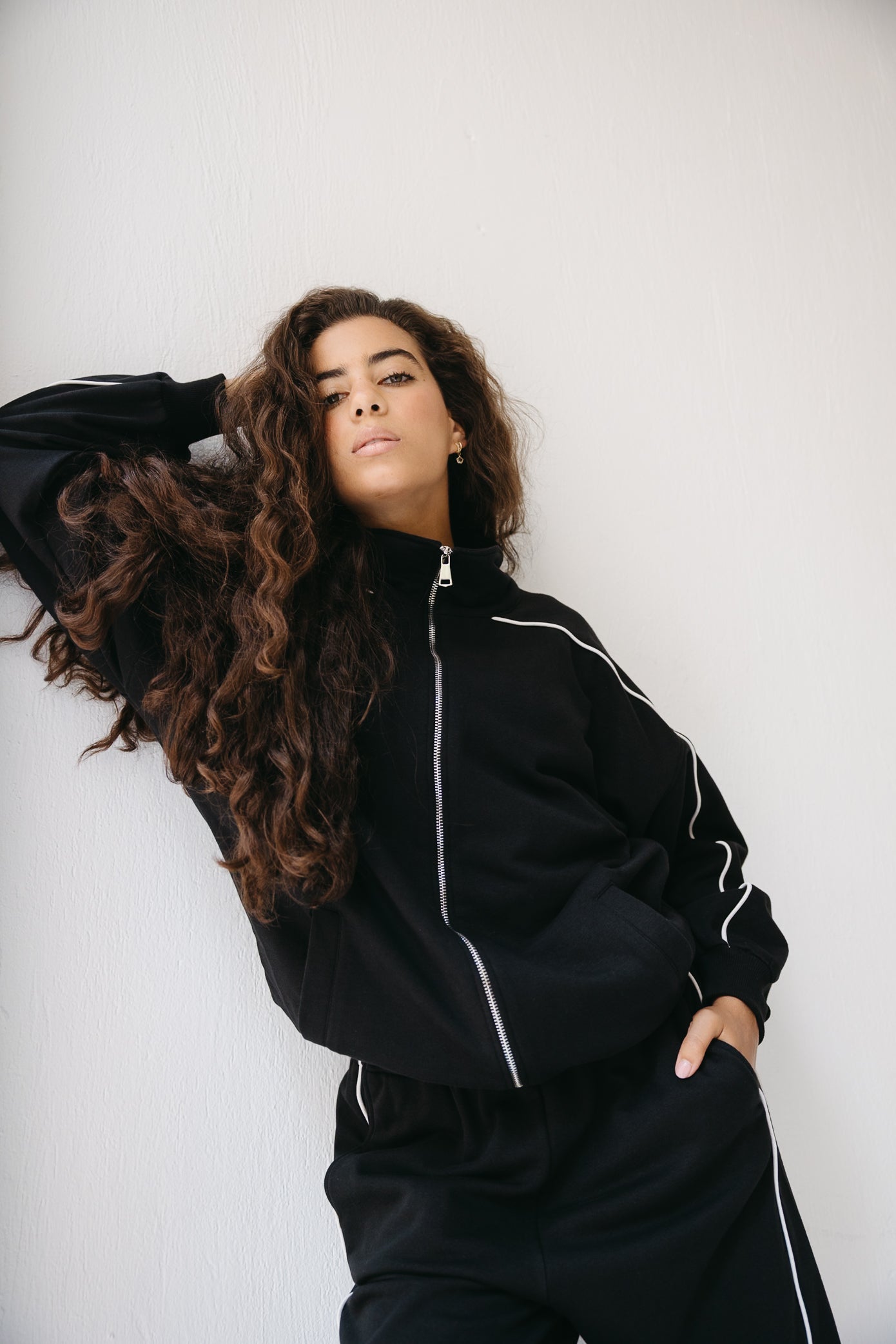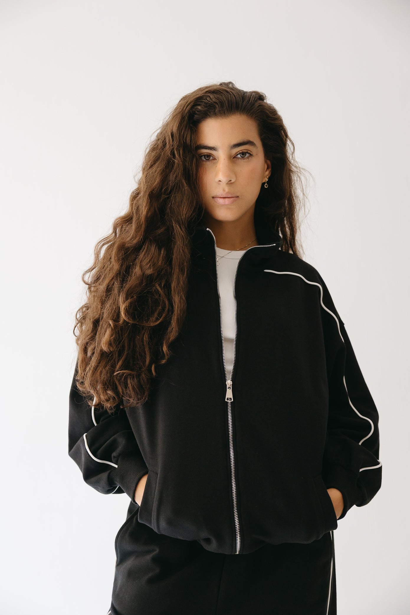 Minimal details, maximum impact. Featuring sleek piping lines and a relaxed zip-up design, this set blends sporty elegance with everyday comfort. Perfect for laid-back days, travel, or styling with sneakers for a modern, effortless look.