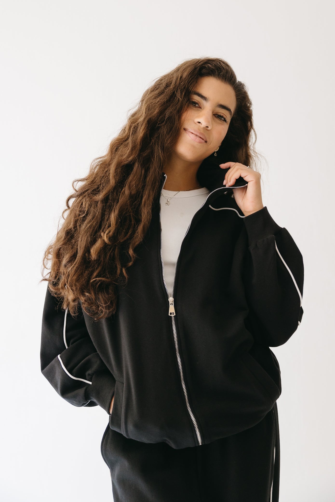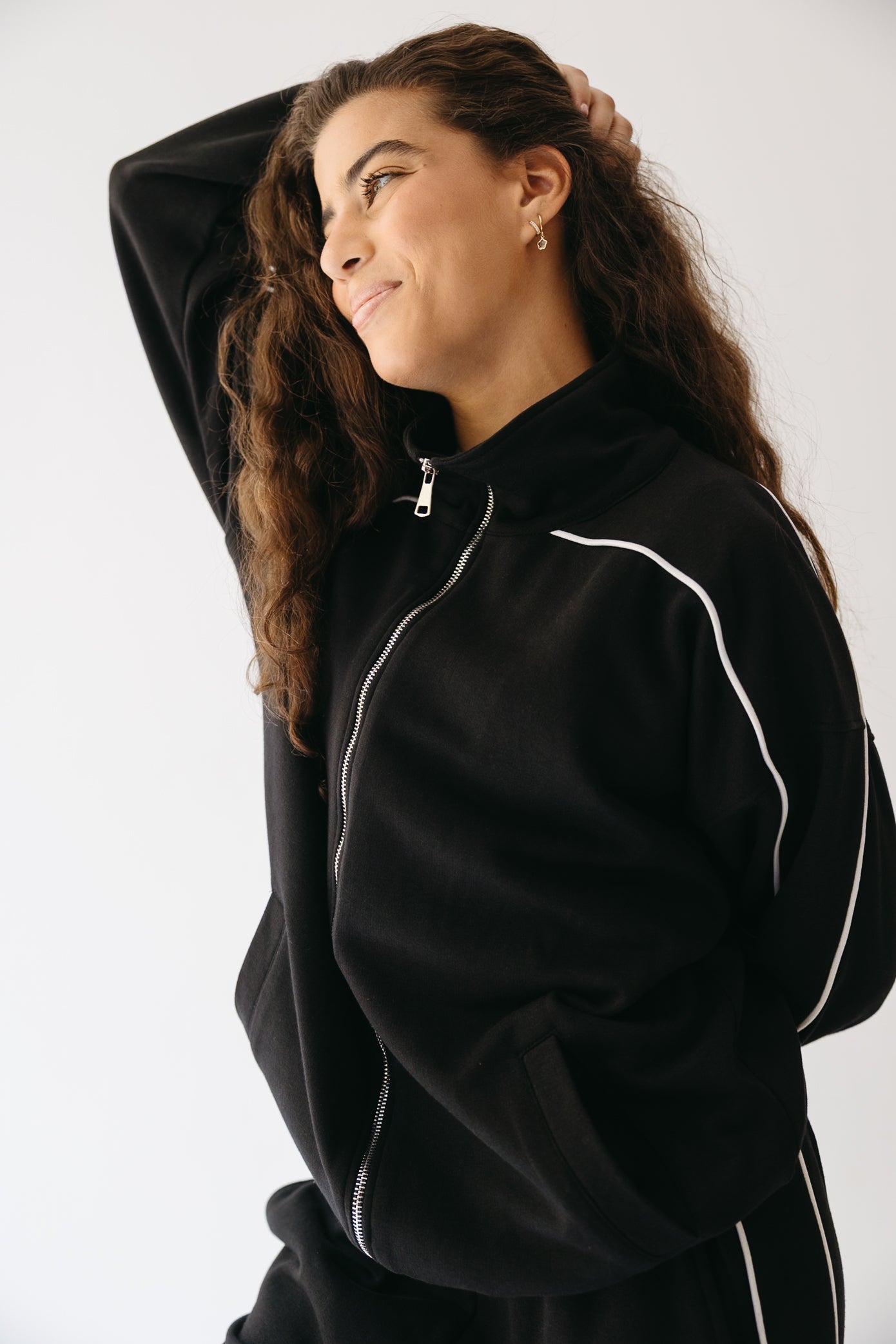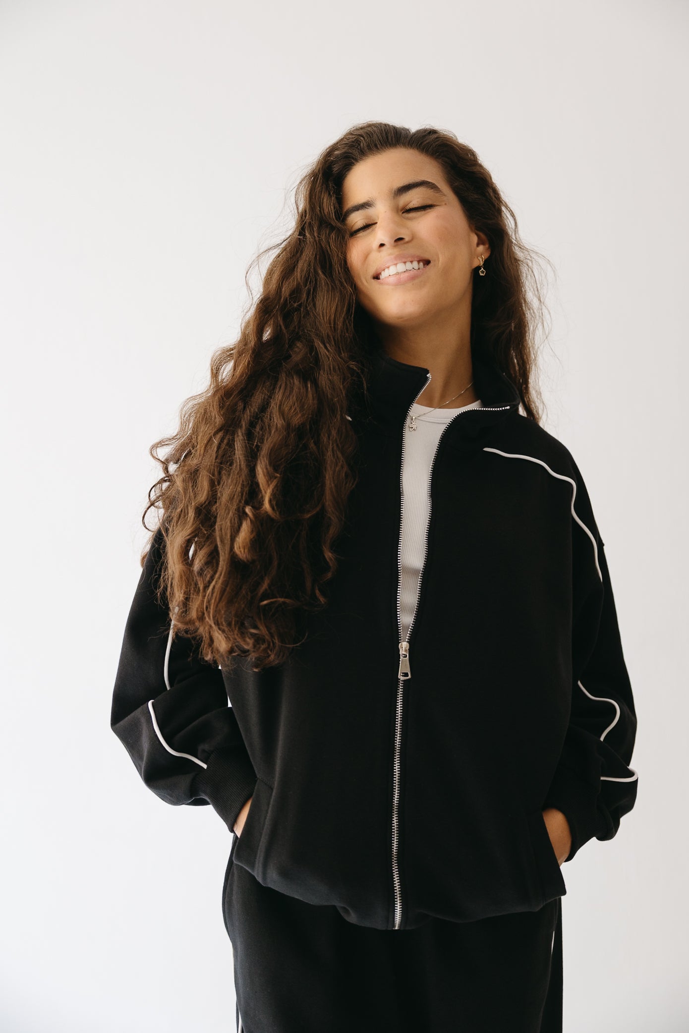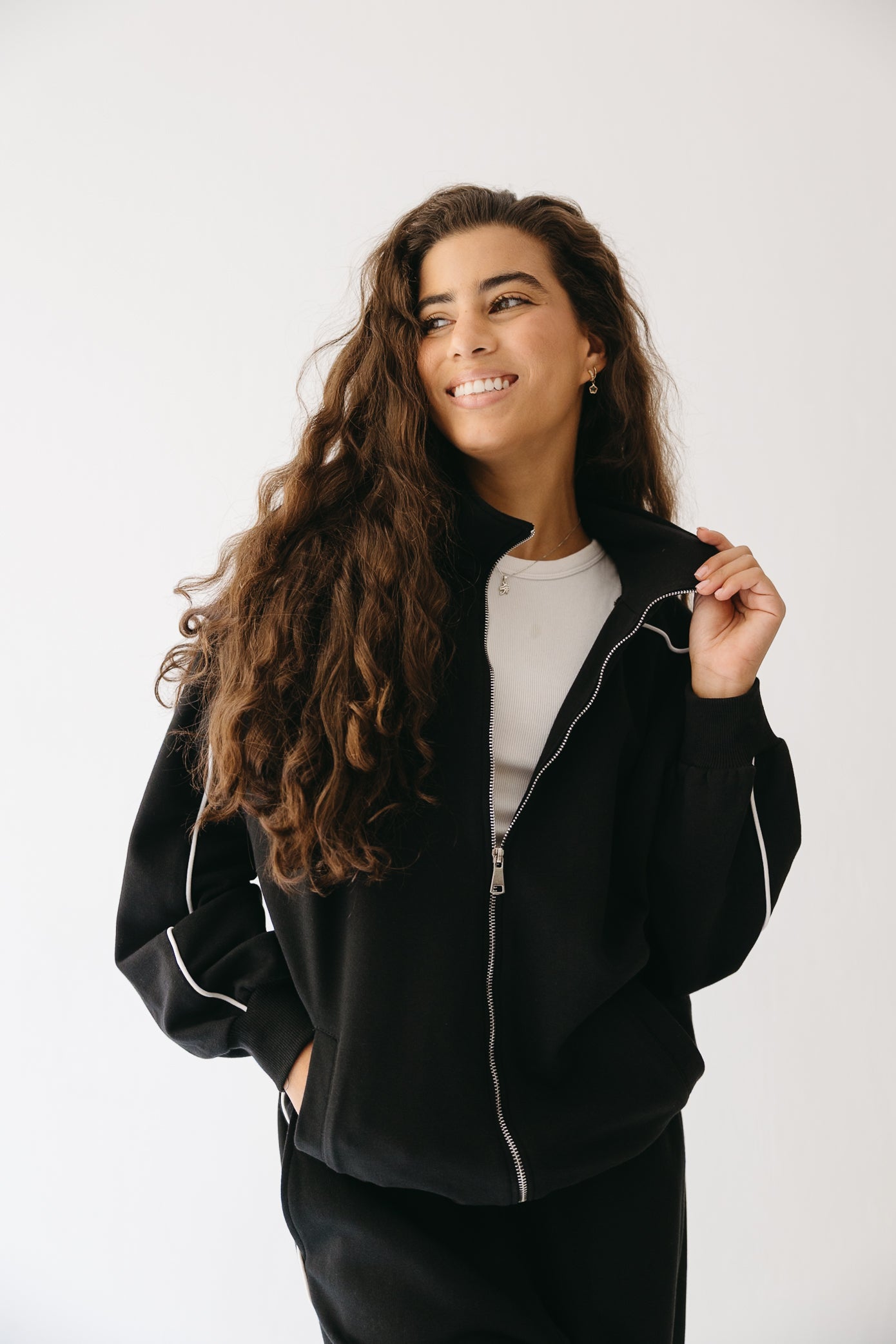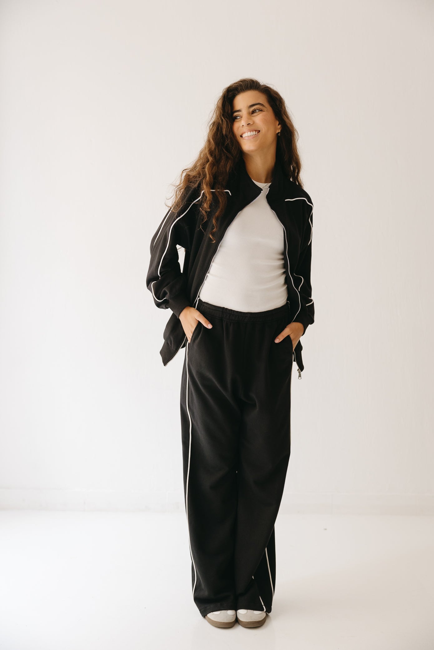 Minimal details, maximum impact. Featuring sleek piping lines and a relaxed zip-up design, this set blends sporty elegance with everyday comfort. Perfect for laid-back days, travel, or styling with sneakers for a modern, effortless look.