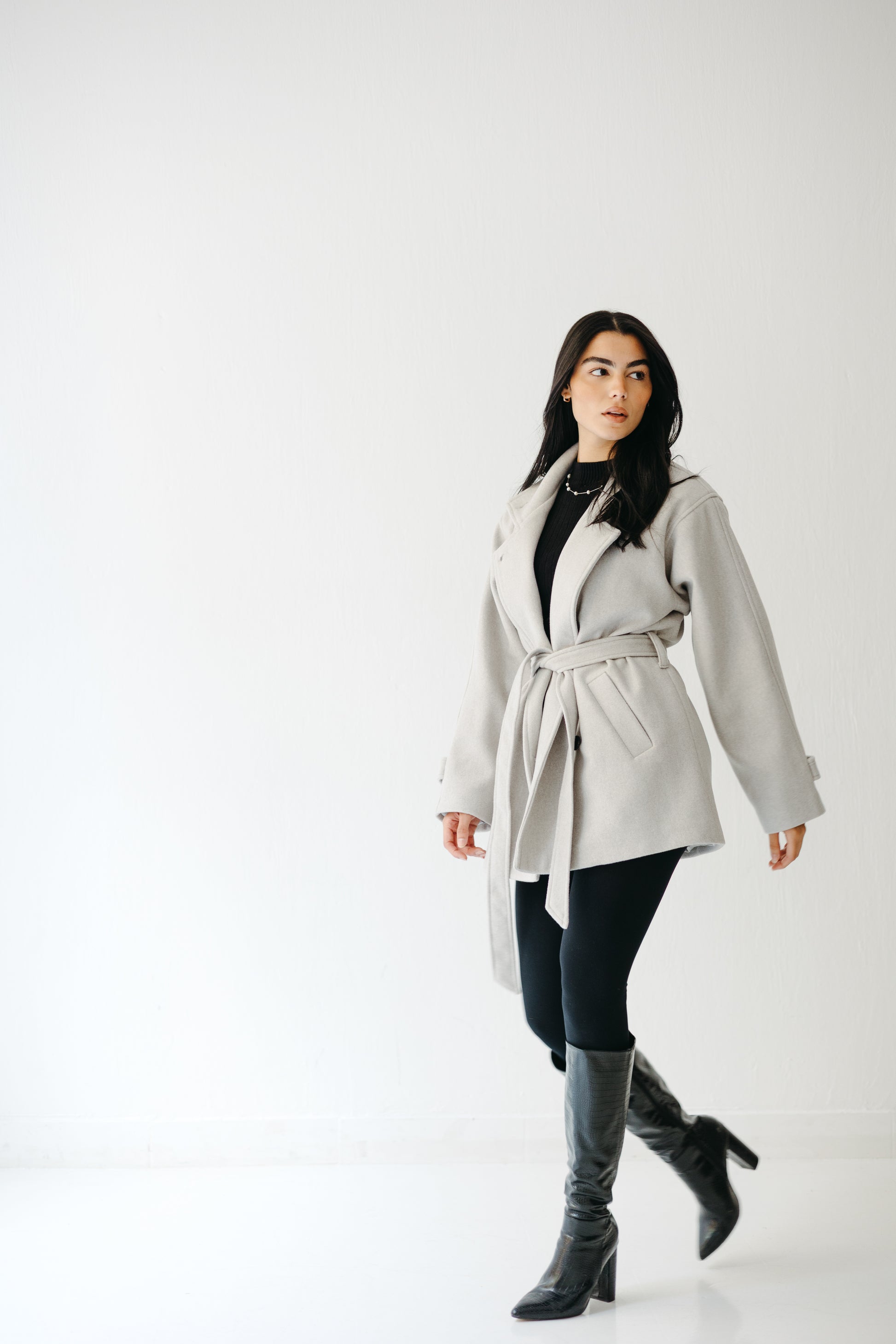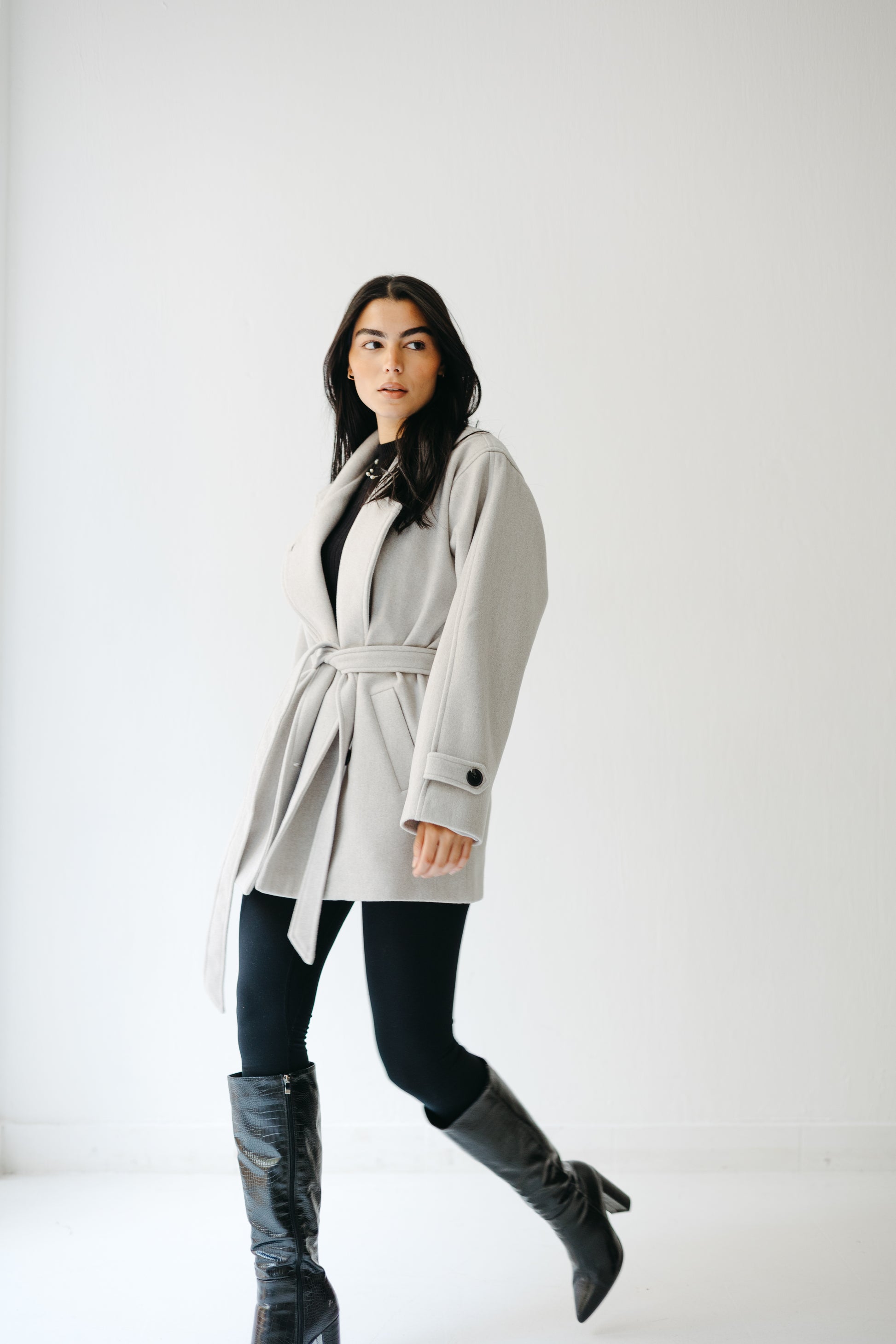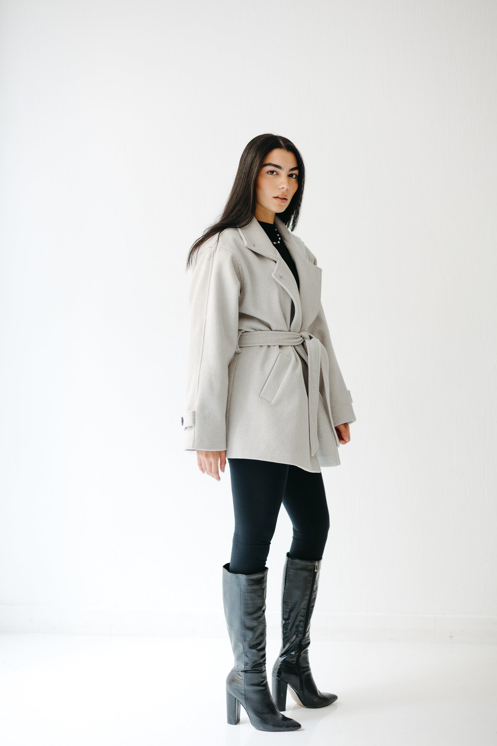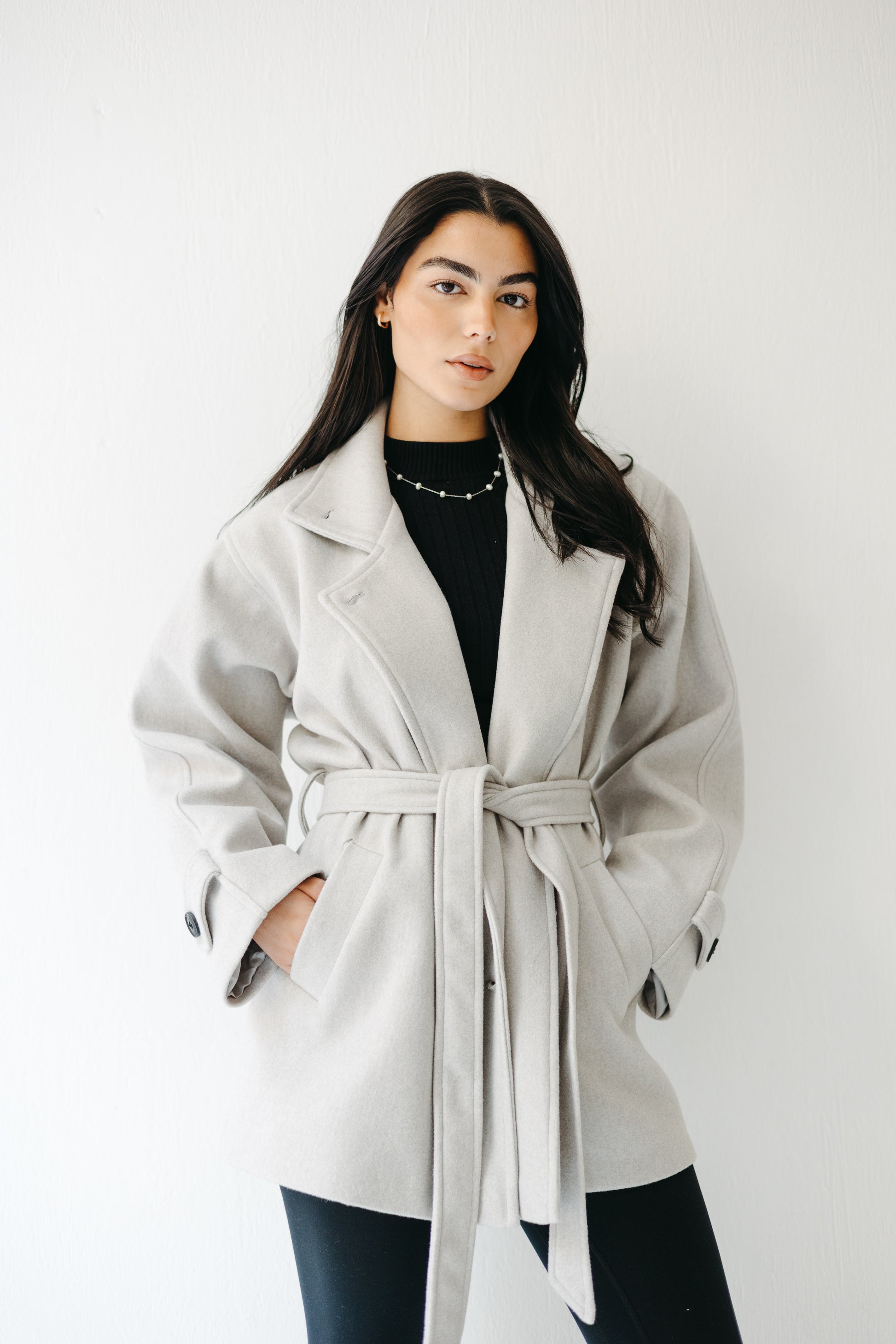 The Loft Jacket blends soft structure with quiet sophistication — featuring a tailored silhouette, wrap belt closure, and relaxed drop shoulders for effortless layering. Crafted from a warm wool blend in serene neutrals, it’s the piece you’ll reach for season after season.