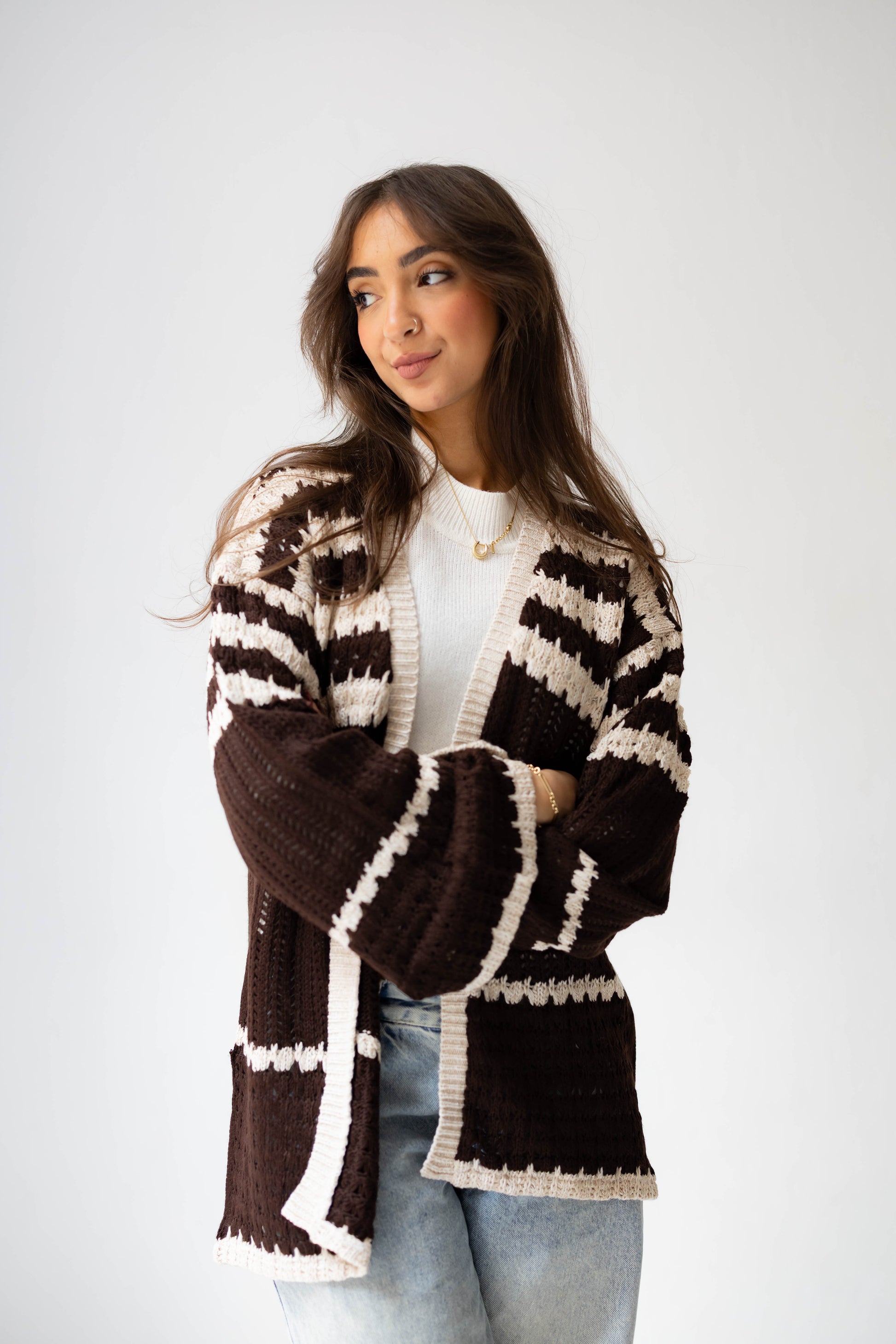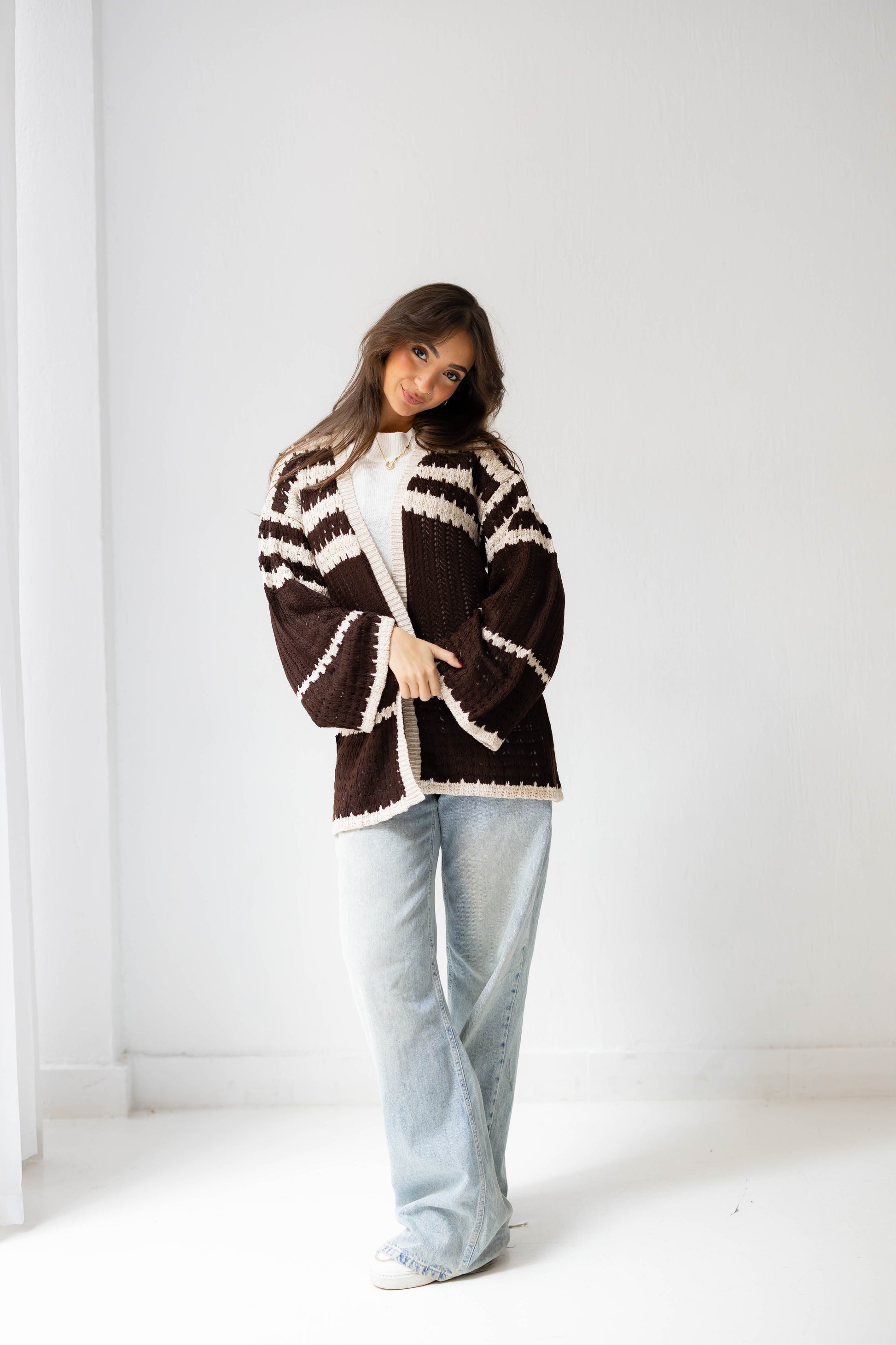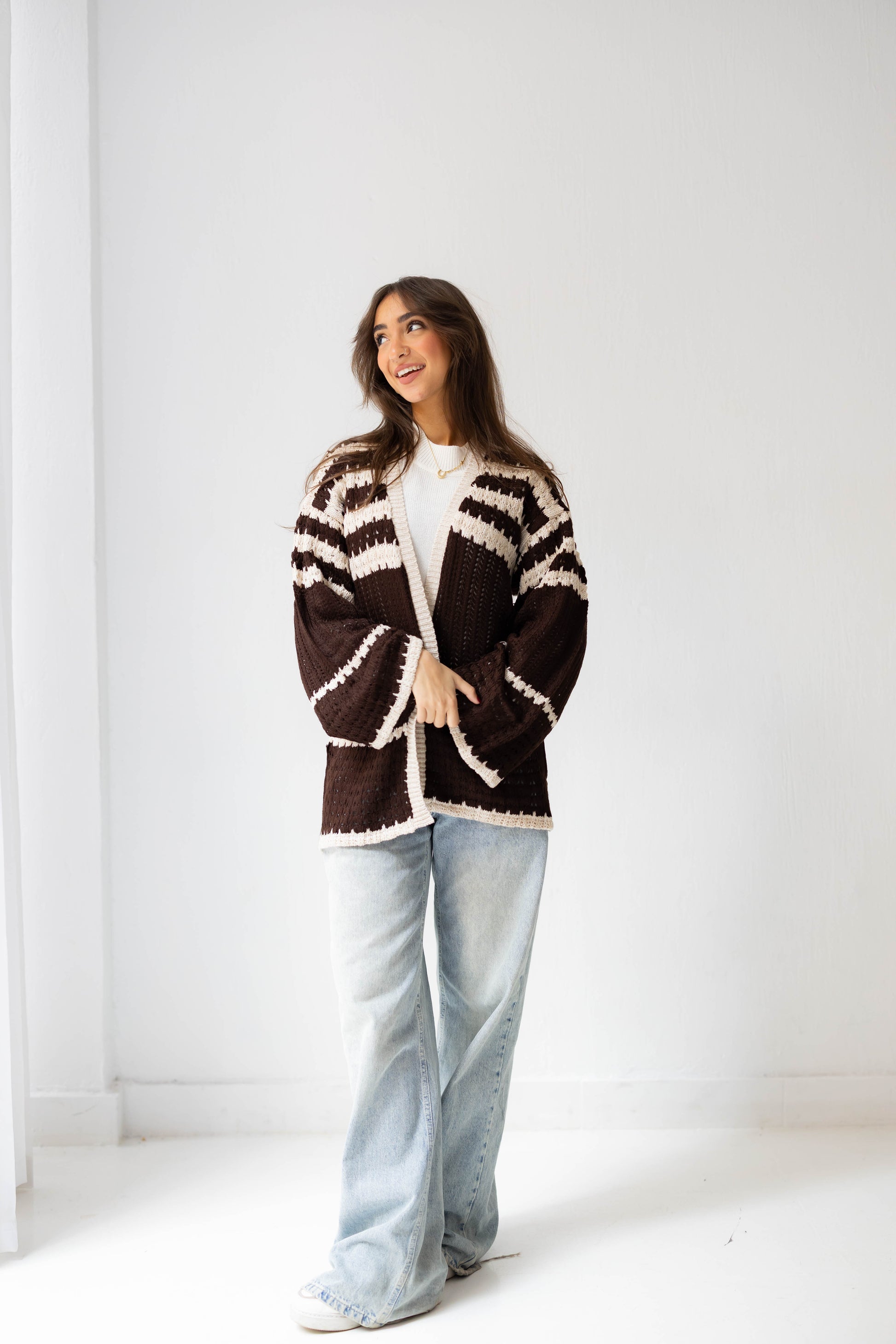 A cozy hand-knitted piece with bold stripes and a relaxed fit. Perfect for layering through cold days — effortlessly minimal, endlessly comfortable.