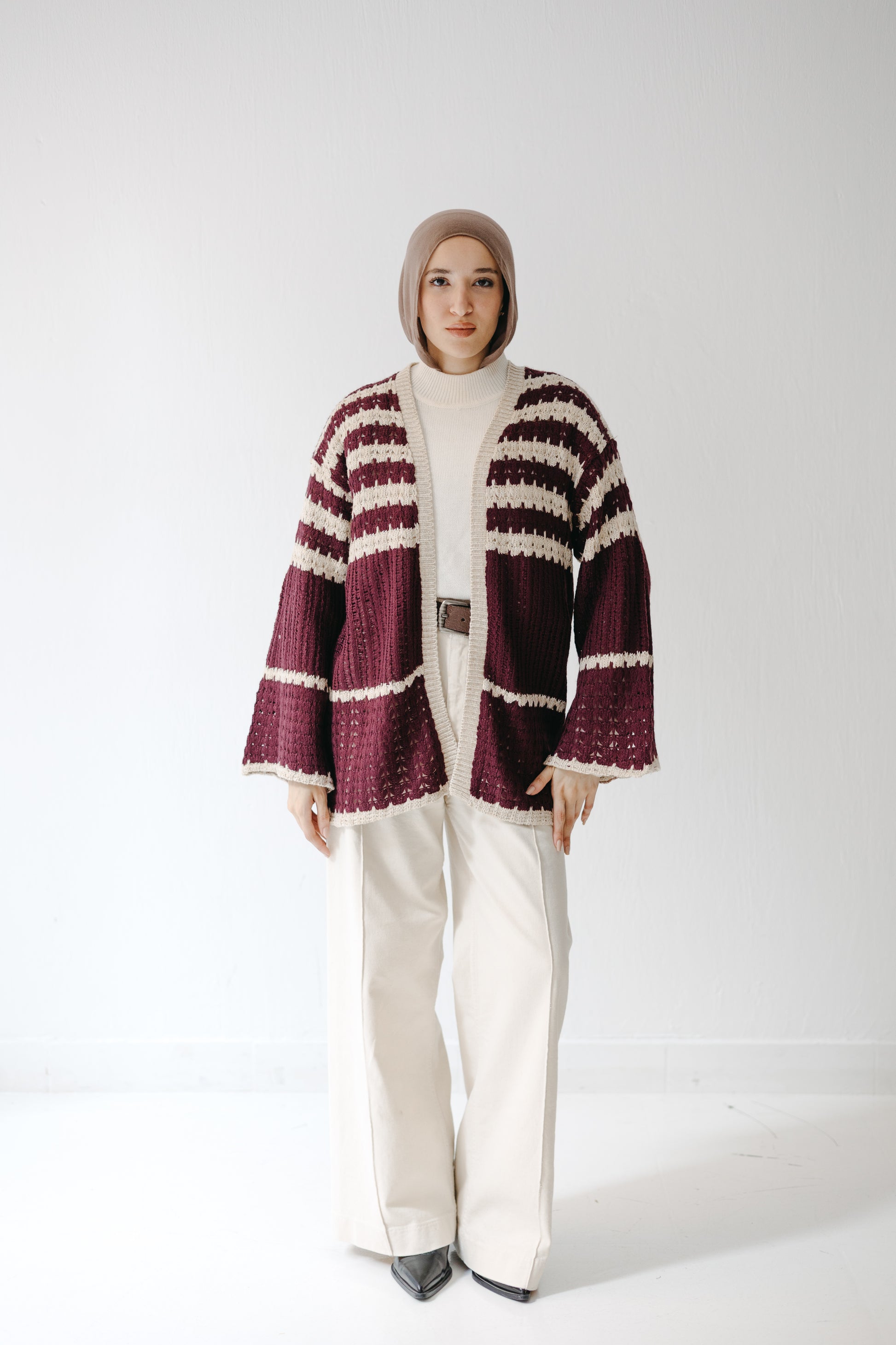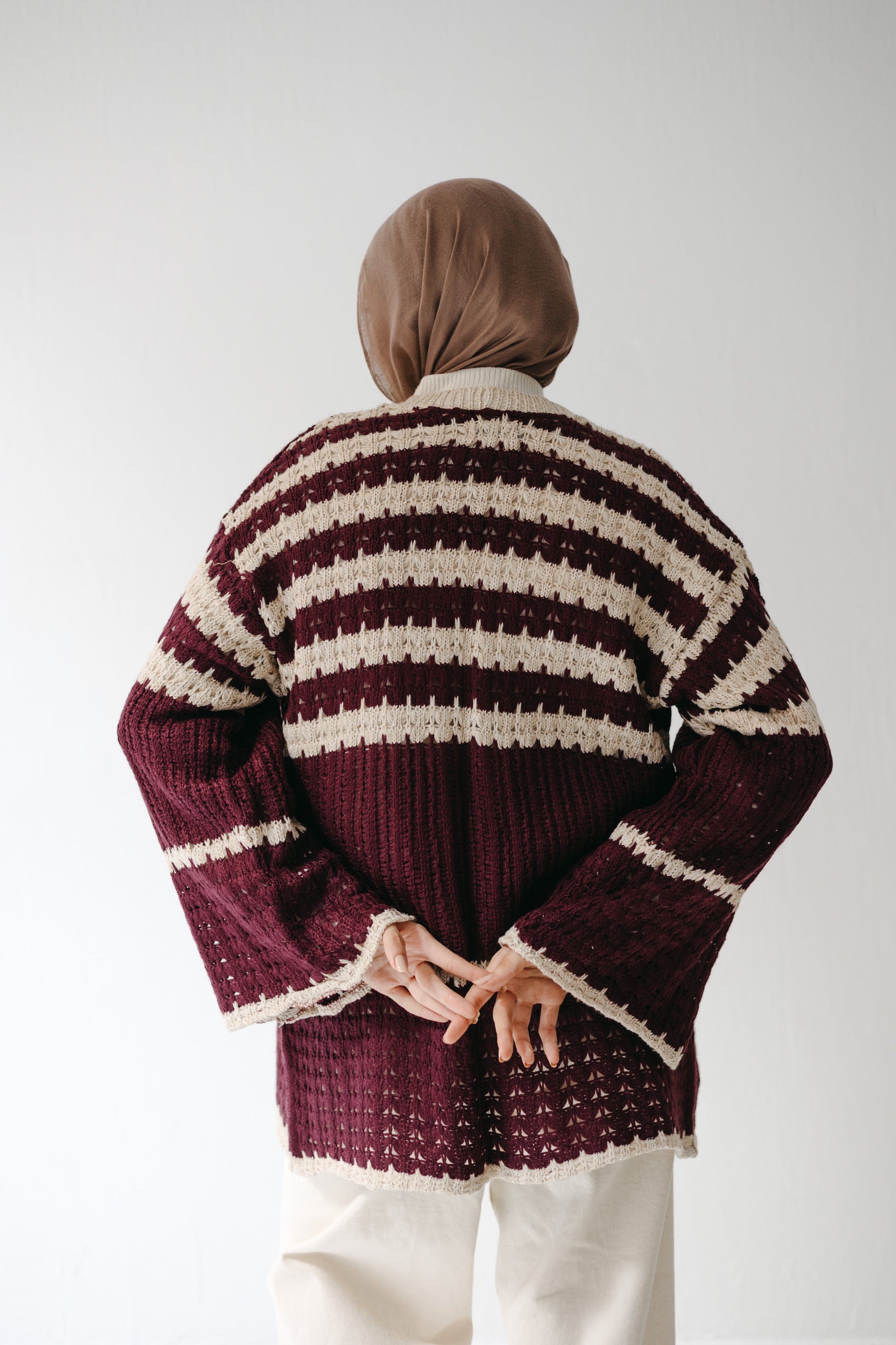 A cozy hand-knitted piece with bold stripes and a relaxed fit. Perfect for layering through cold days — effortlessly minimal, endlessly comfortable.