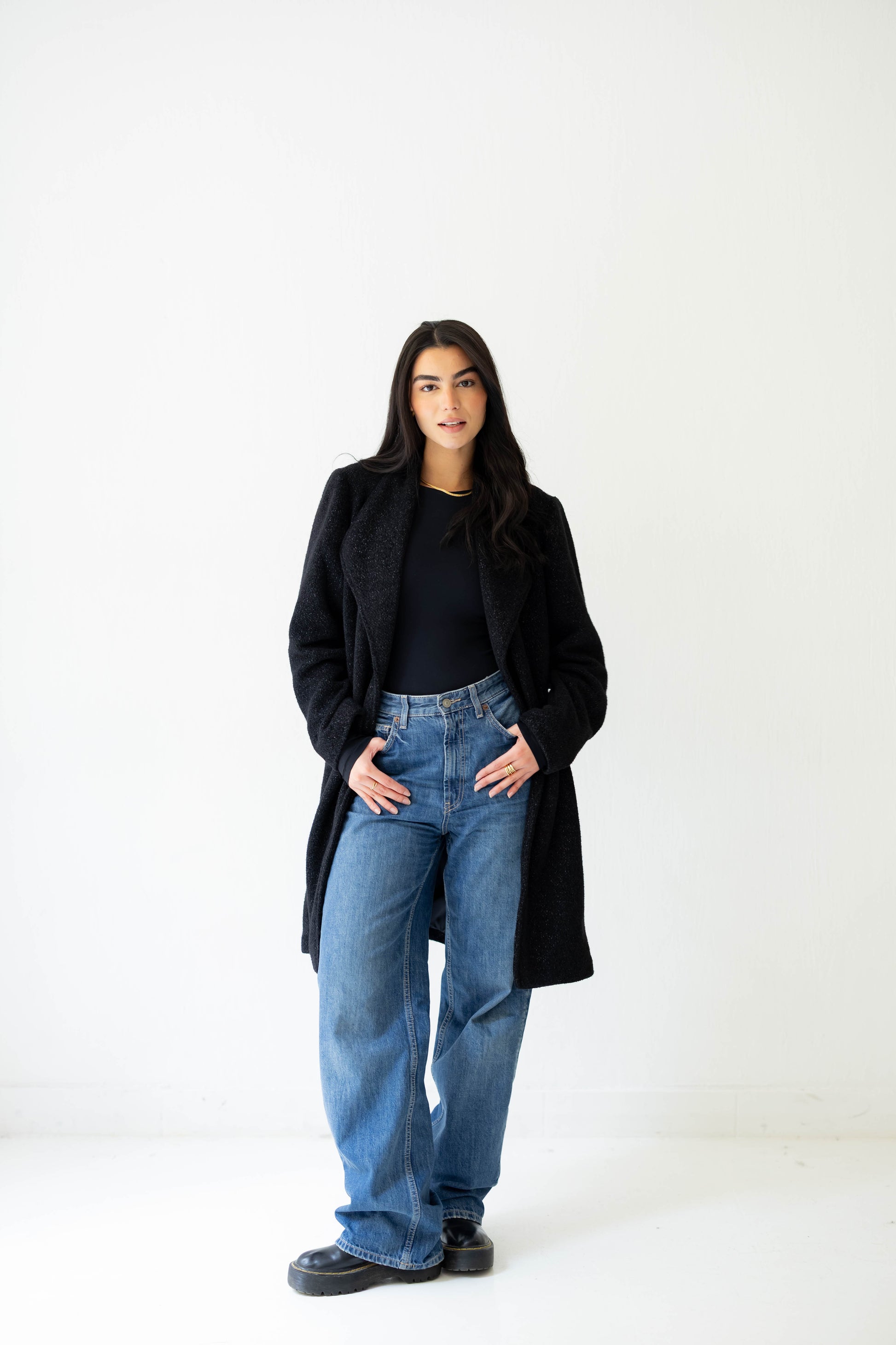 A clean, effortless jacket designed with a modern wrap front and a soft belted waist. Crafted in a relaxed silhouette for everyday comfort, with a structured minimal look that elevates any outfit. Perfect for simple, timeless style.