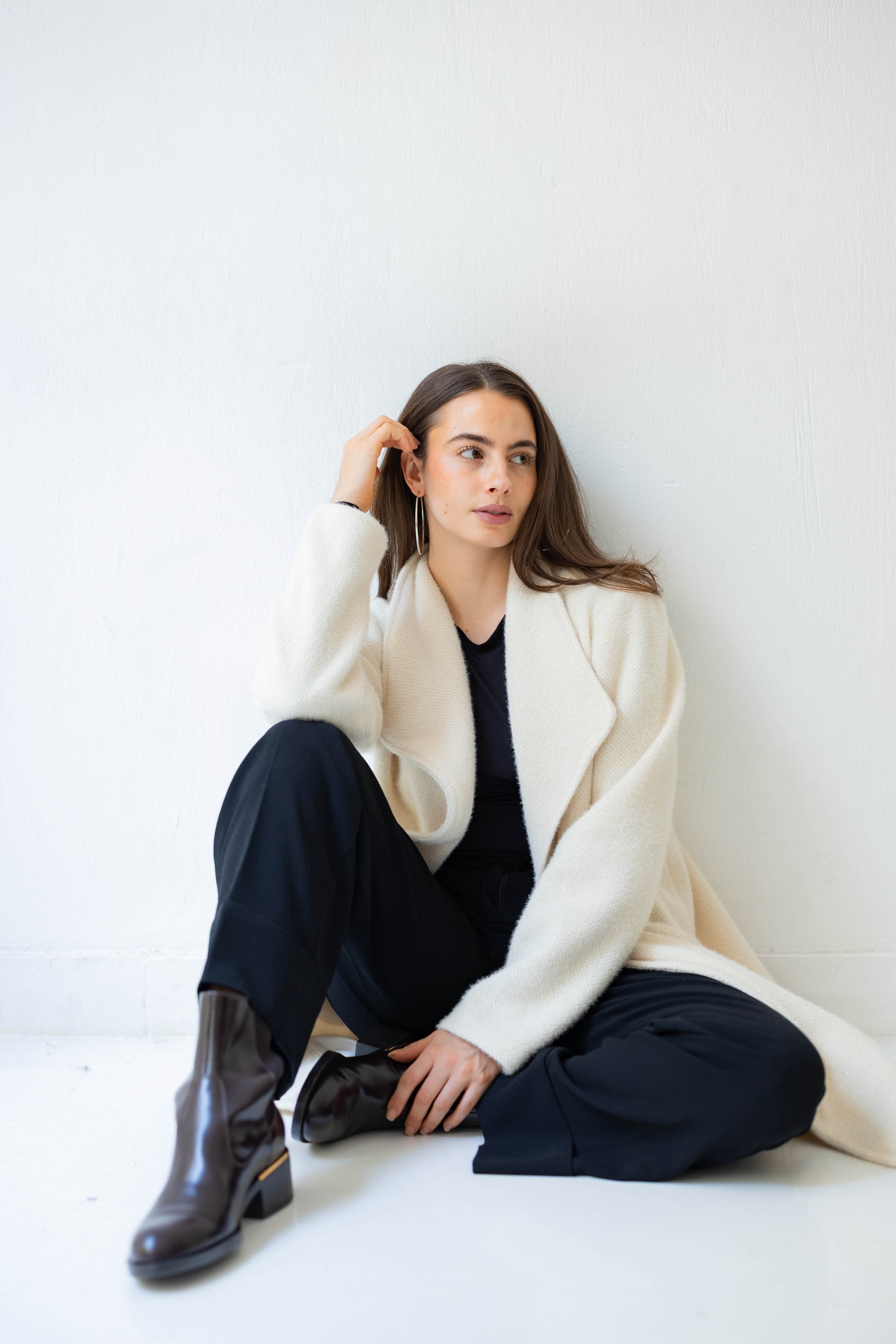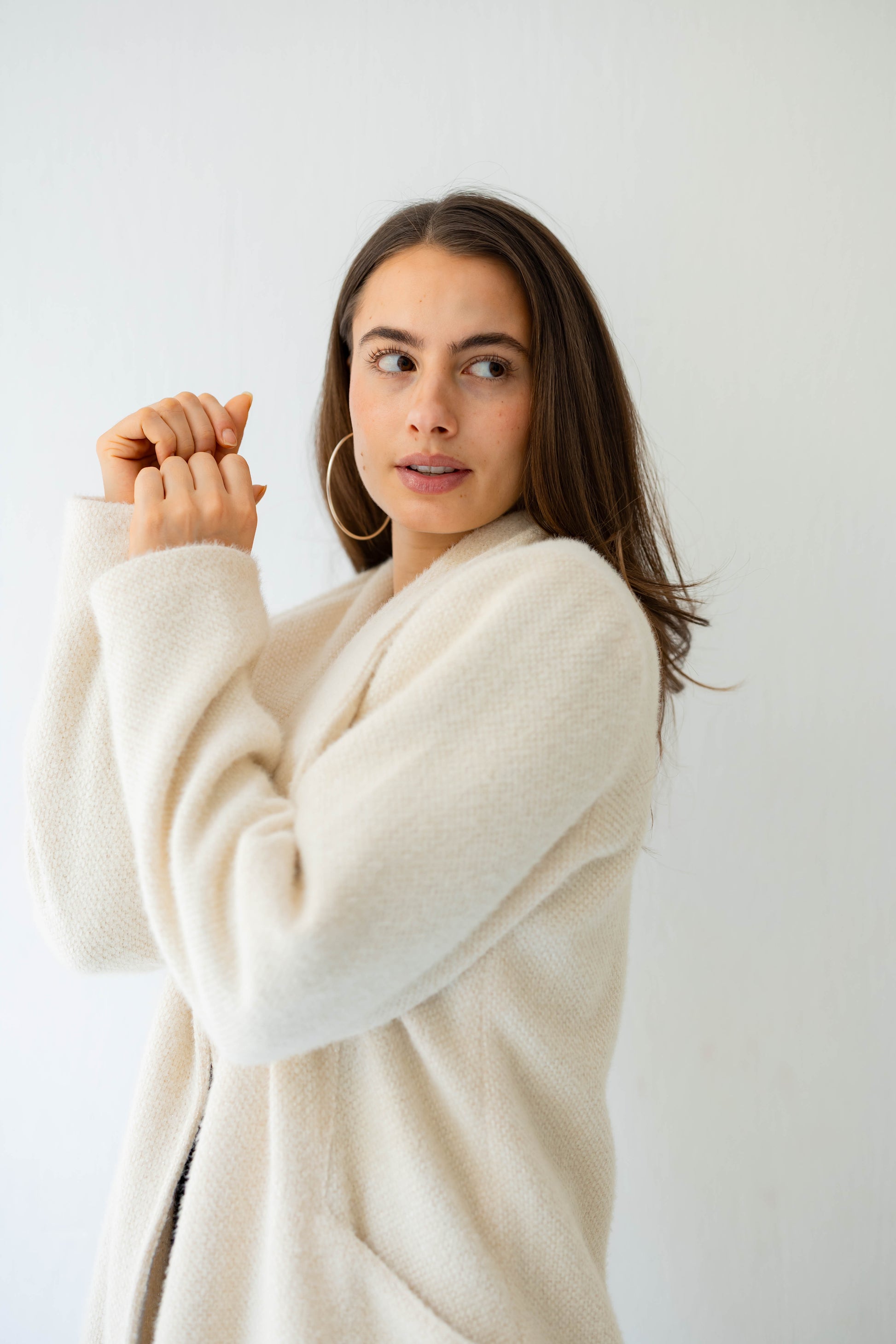 Wrap yourself in gentle warmth with the Whisper Shine Coat – a soft, knitted beauty with a delicate shimmer, a cozy collar, and a relaxed, button-free silhouette. Perfect for adding a touch of magic to any outfit.